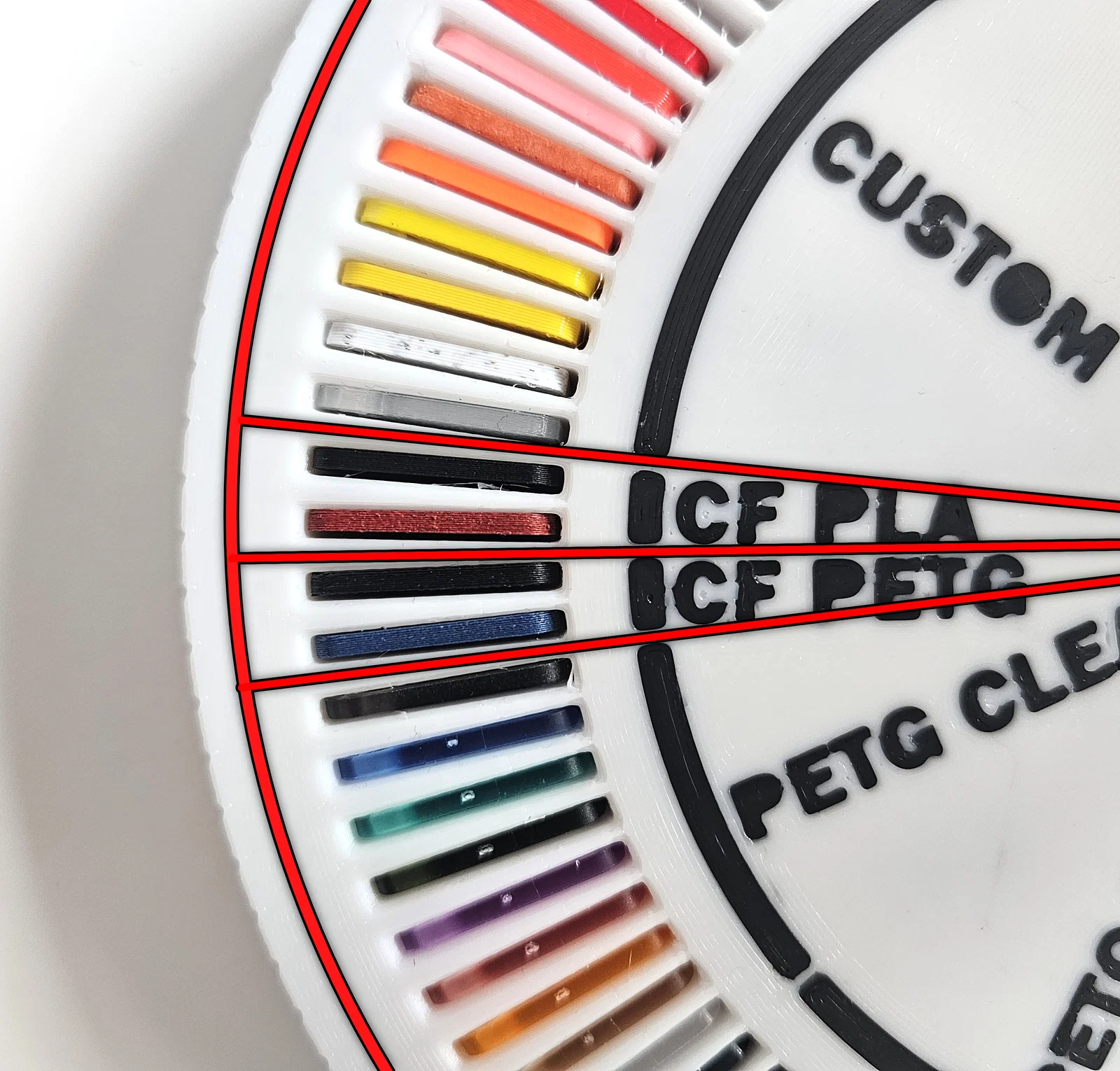 Phụ kiện bảo vệ tia UV (UV Protector) được đi kèm để che phần trên của các miếng swatch, giúp ngăn tia UV làm bạc màu mẫu nhựa theo thời gian. Ngoài ra, nó cũng rất hữu ích khi cần di chuyển spinner (đặc biệt khi chuyển nhà hoặc dọn ký túc xá). Nếu dùng để vận chuyển, hãy dùng loại băng dính không để lại keo (như băng dính Kapton) để cố định đĩa xoay. Bạn cũng có thể in thêm một để vận chuyển dễ dàng hơn.