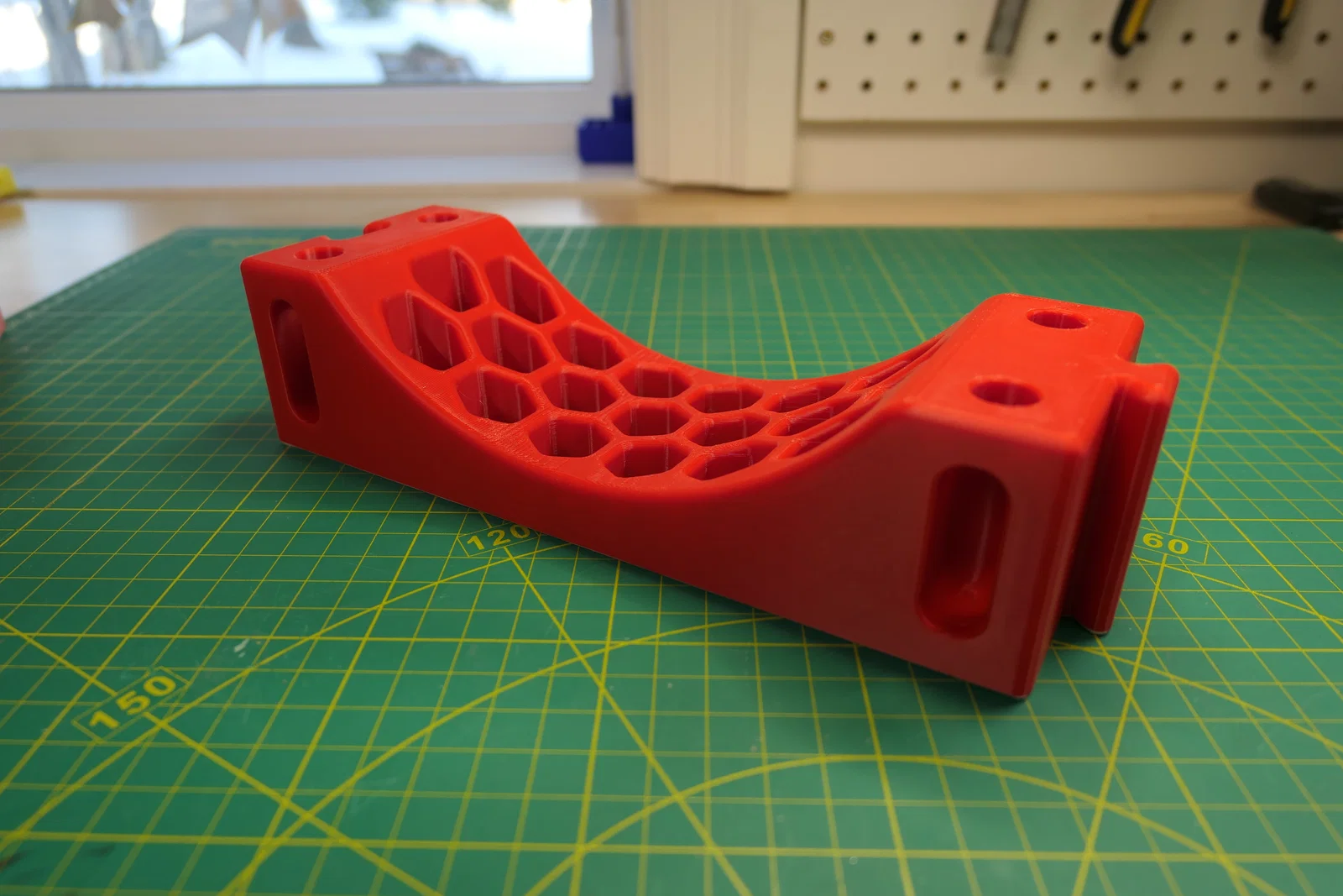 Hãy in bằng nhựa ABS hoặc ASA (hoặc PETG nếu không có loại trên). Nhựa PLA quá giòn và sẽ bị biến dạng dưới nhiệt độ cao bên trong xe hơi vào mùa hè (đúng vậy, mình đã thử nghiệm rồi).