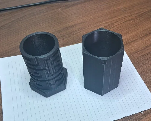 Hình ảnh đính kèm có chất lượng hơi thấp, mong các bác thông cảm ạ. Mẫu này mình in với layer height 0.12 và không cần hỗ trợ (supports). Mọi chi tiết khớp rất ngon với phần mê cung nhé.