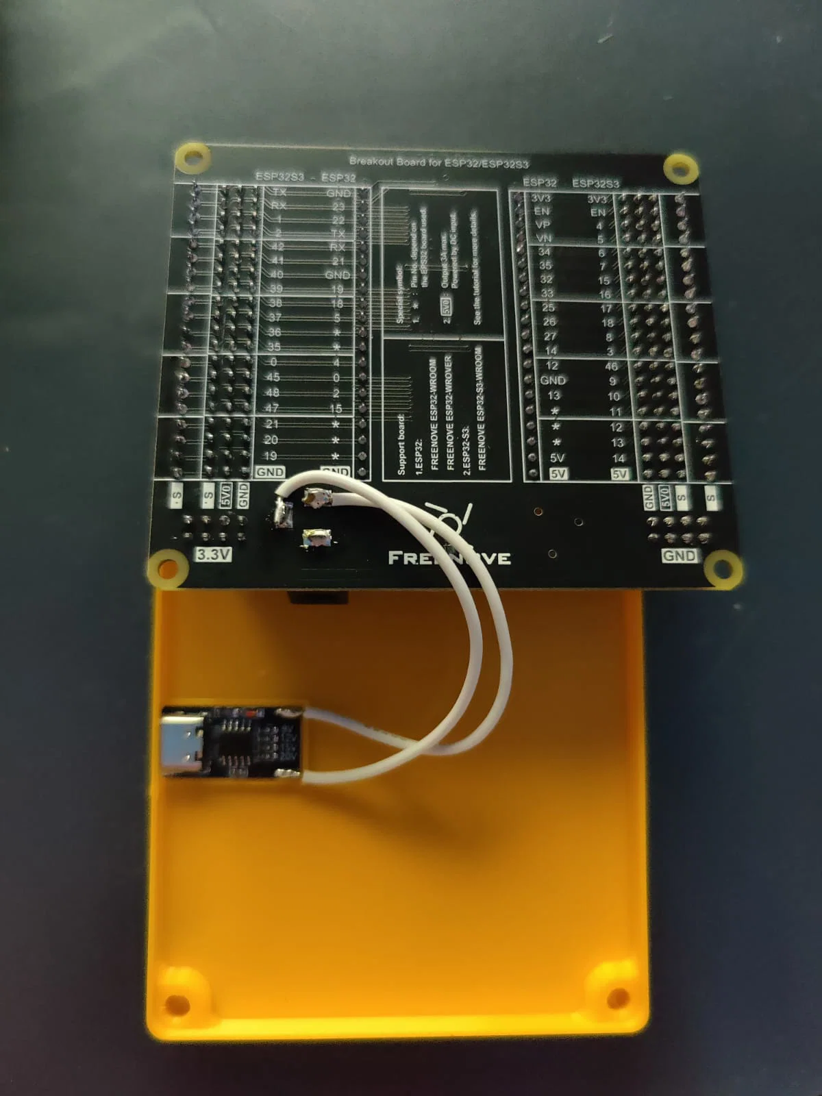 Mẫu vỏ bảo vệ được thiết kế dành riêng cho mạch ESP32/ESP32s3 breakout của Freenove. Bản thiết kế có tích hợp sẵn khe cắm mạch PD trigger giúp cấp nguồn cho board mạch một cách gọn gàng và tiện lợi nhất.