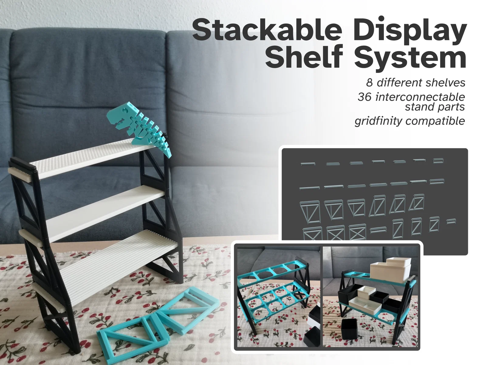 Xây dựng hệ thống trưng bày hoặc Gridfinity của riêng bạn với Stackable Display Shelf System! Thiết kế dễ in, dễ lắp ráp, không cần keo dán, giúp bạn tiết kiệm nhựa và linh hoạt cấu hình theo nhu cầu sử dụng.