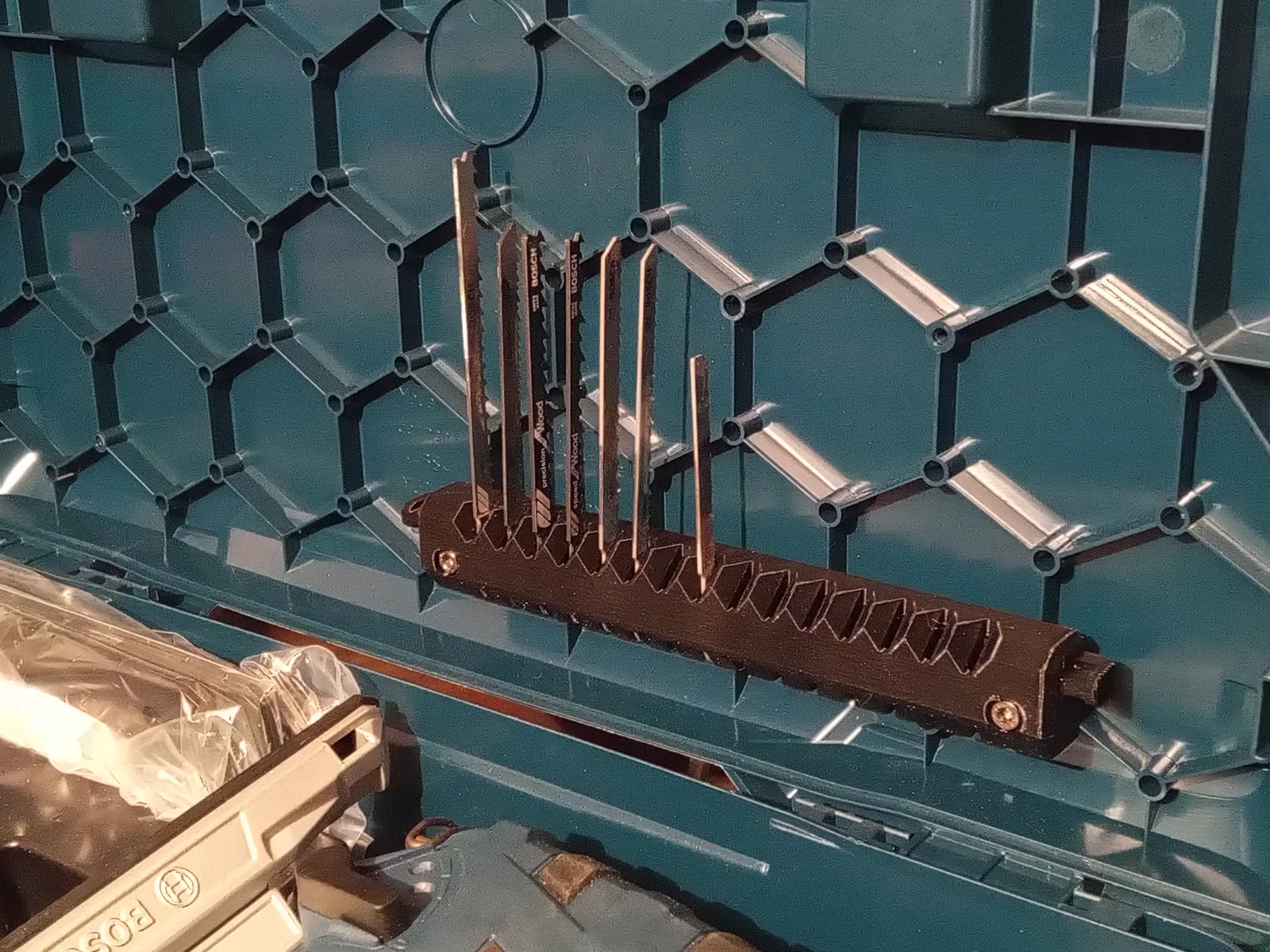 Mình không tìm được cái giá đỡ nào ưng ý cho bộ lưỡi cưa lọng Bosch 18V (GST 18 V-LI S) của mình, nên mình đã dành khá nhiều thời gian để thiết kế ra cái giá đỡ này.