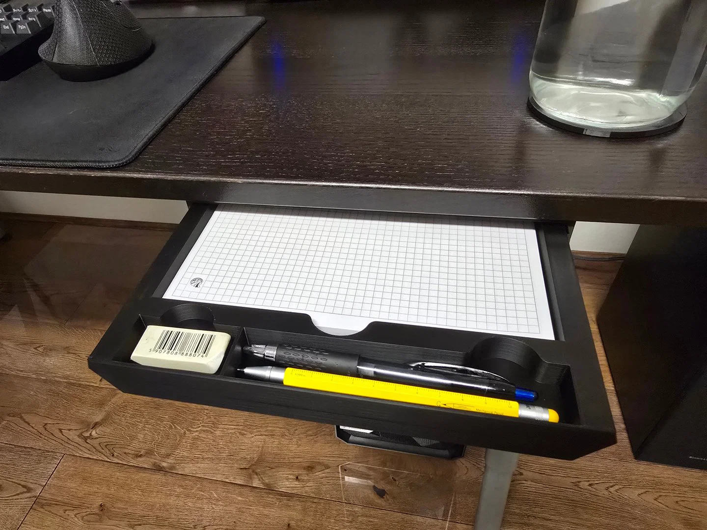 Bạn đang cần tìm cách sắp xếp lại bàn làm việc cho gọn gàng hơn? Mẫu ngăn kéo in 3D này được thiết kế chuyên biệt để lắp dưới mặt bàn, giúp bạn lưu trữ ngăn nắp khoảng 100 tờ giấy khổ A5 cùng các loại bút, gôm và thước kẻ thường dùng. Với thiết kế thông minh, sản phẩm giúp giải phóng không gian mặt bàn hiệu quả, tạo sự thoải mái và chuyên nghiệp cho góc học tập hay làm việc của bạn. Đây là phụ kiện 3D hữu ích, dễ in bằng chất liệu PLA thông dụng, phù hợp với hầu hết các loại bàn làm việc hiện nay. Hãy tận dụng tối đa không gian dưới bàn với mẫu ngăn kéo tiện lợi này để công việc hằng ngày trở nên trơn tru và khoa học hơn.