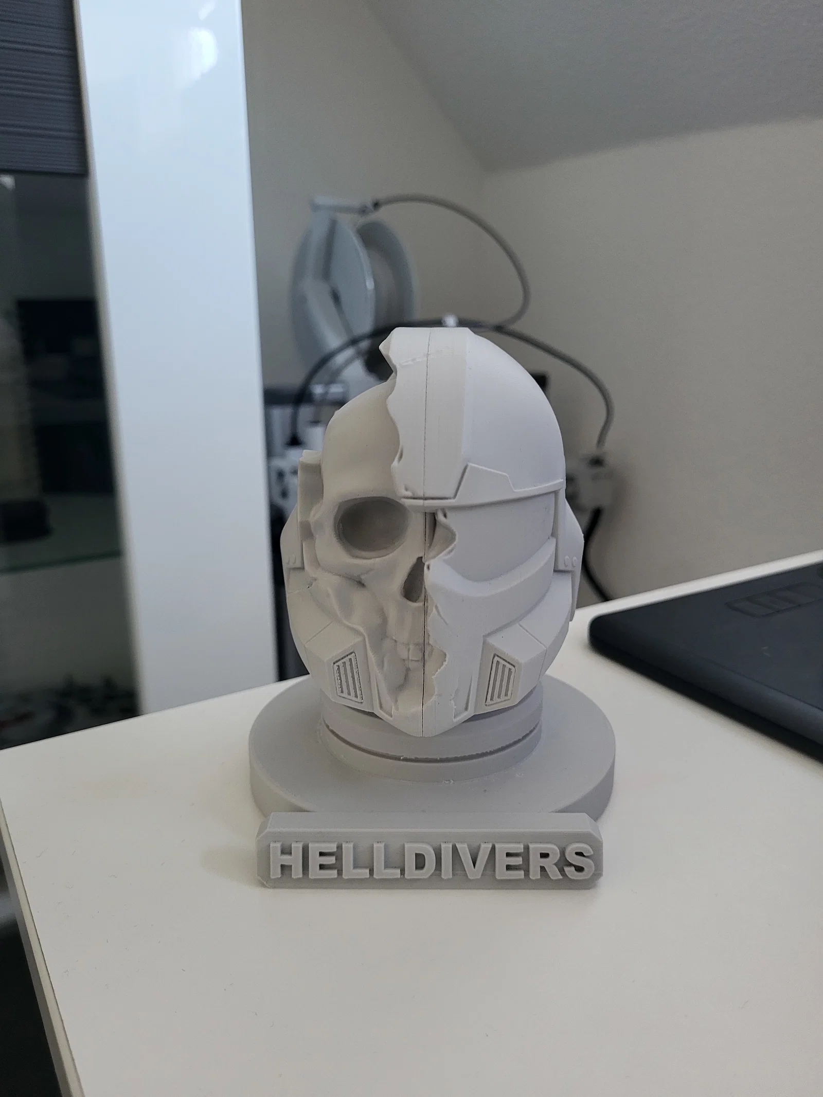 Mô hình Helldivers Helmet cực chất để trưng bày trên kệ hoặc bàn làm việc của bạn (cao 12cm). File đã sẵn sàng để in, thích hợp cho việc làm prop trang trí.