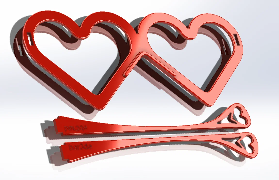 Sản phẩm này được thiết kế theo dạng module rời, bao gồm phần khung kính lớn hình hai trái tim lồng ghép và hai càng kính riêng biệt. Cách lắp ráp rất đơn giản và trực quan, giúp bạn dễ dàng hoàn thiện sản phẩm sau khi in. Đây là món quà thủ công mang ý nghĩa tình cảm chân thành, thay vì những món quà mua sẵn tẻ nhạt, việc tự tay in và lắp ráp món đồ này chắc chắn sẽ làm người nhận cảm thấy vô cùng bất ngờ và hạnh phúc.
