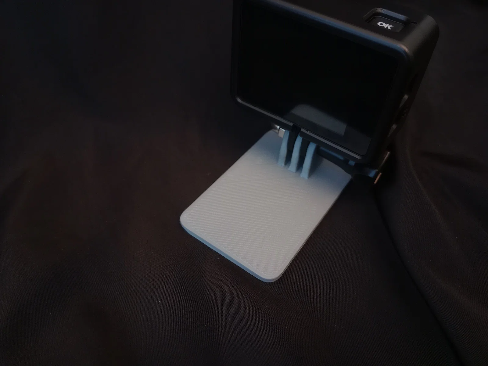 Đây là chi tiết được in 3D bằng nhựa PLA trên máy in Kobra 2 Pro. Phụ kiện này giúp bạn gắn các dòng action camera nhỏ, ví dụ như GoPro, vào bất kỳ gimbal chống rung nào, đồng thời có thể dùng làm đế để đặt máy trên các bề mặt phẳng. Mẫu này rất dễ in và không cần dùng đến vật liệu hỗ trợ (support).