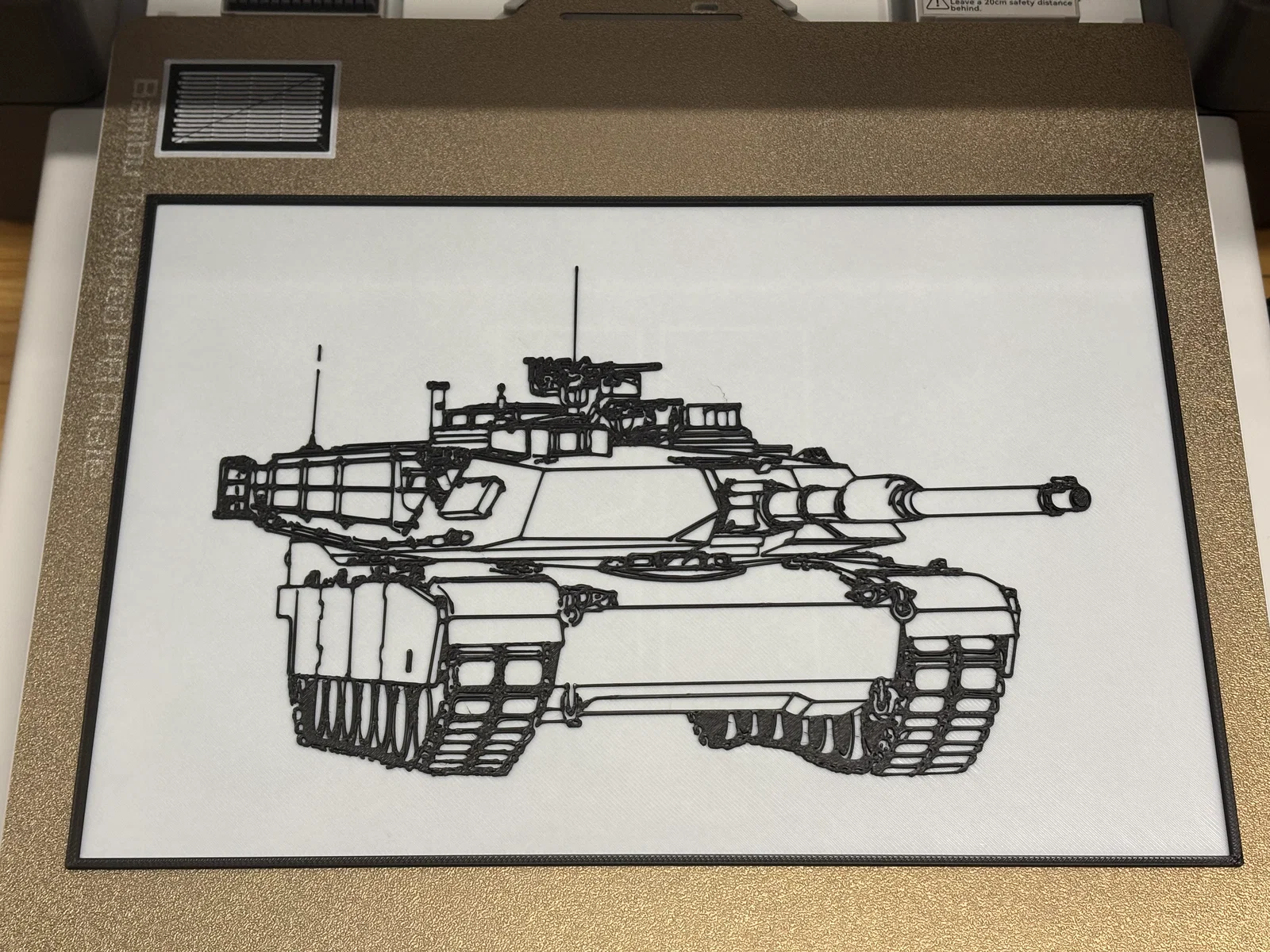 Chào mọi người, Mình đã vector hóa bản vẽ kỹ thuật của chiếc xe tăng M1 Abrams Hoa Kỳ và tối ưu hóa để in với đầu phun 0.4. ### LƯU Ý QUAN TRỌNG: Hình minh họa cực kỳ chi tiết, nên quá trình cắt lớp (slicing) có thể mất đến 10 phút! Vui lòng lưu ý các cài đặt trong ảnh chụp màn hình. Nếu gặp bất kỳ vấn đề gì, cứ nhắn cho mình nhé.