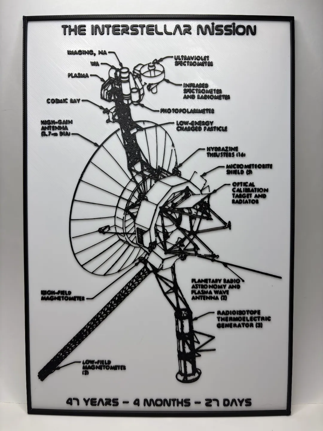 Mình đã vector hóa một bản vẽ kỹ thuật / Poster của tàu thăm dò không gian Voyager 1 và tinh chỉnh để có thể in được với đầu phun 0.4.