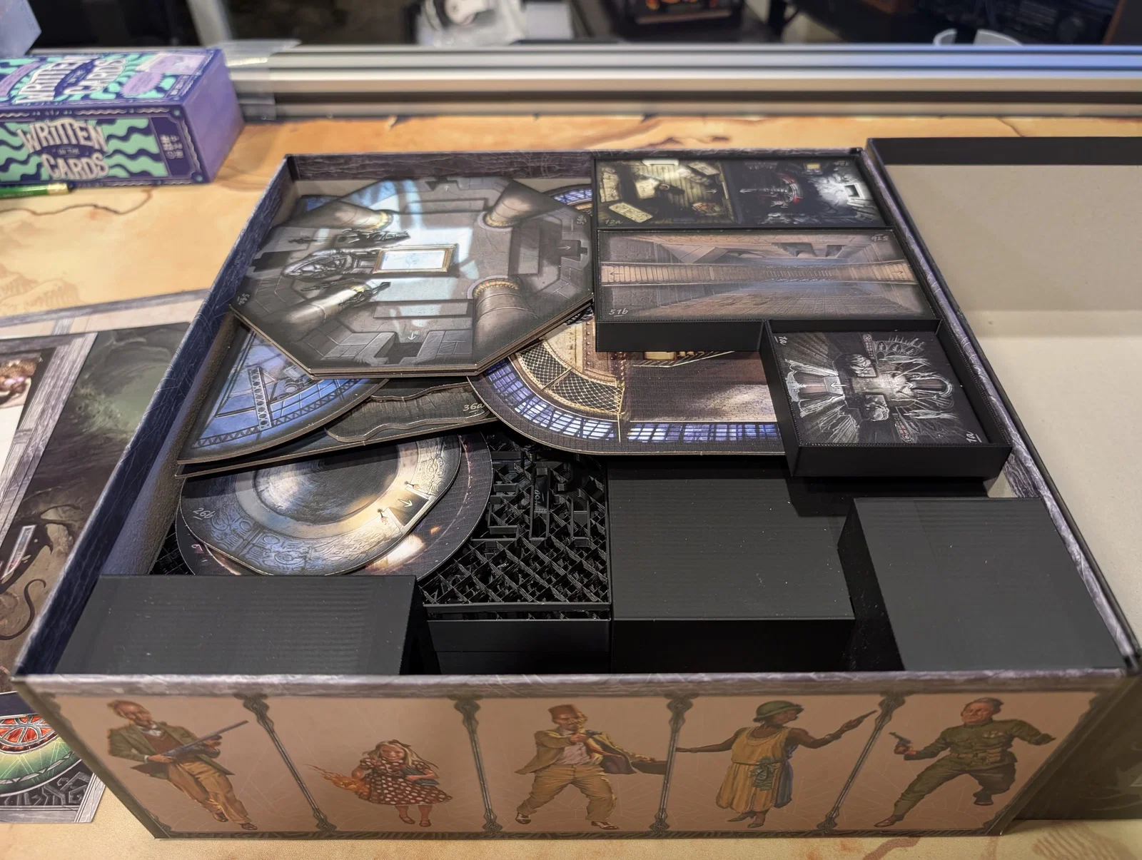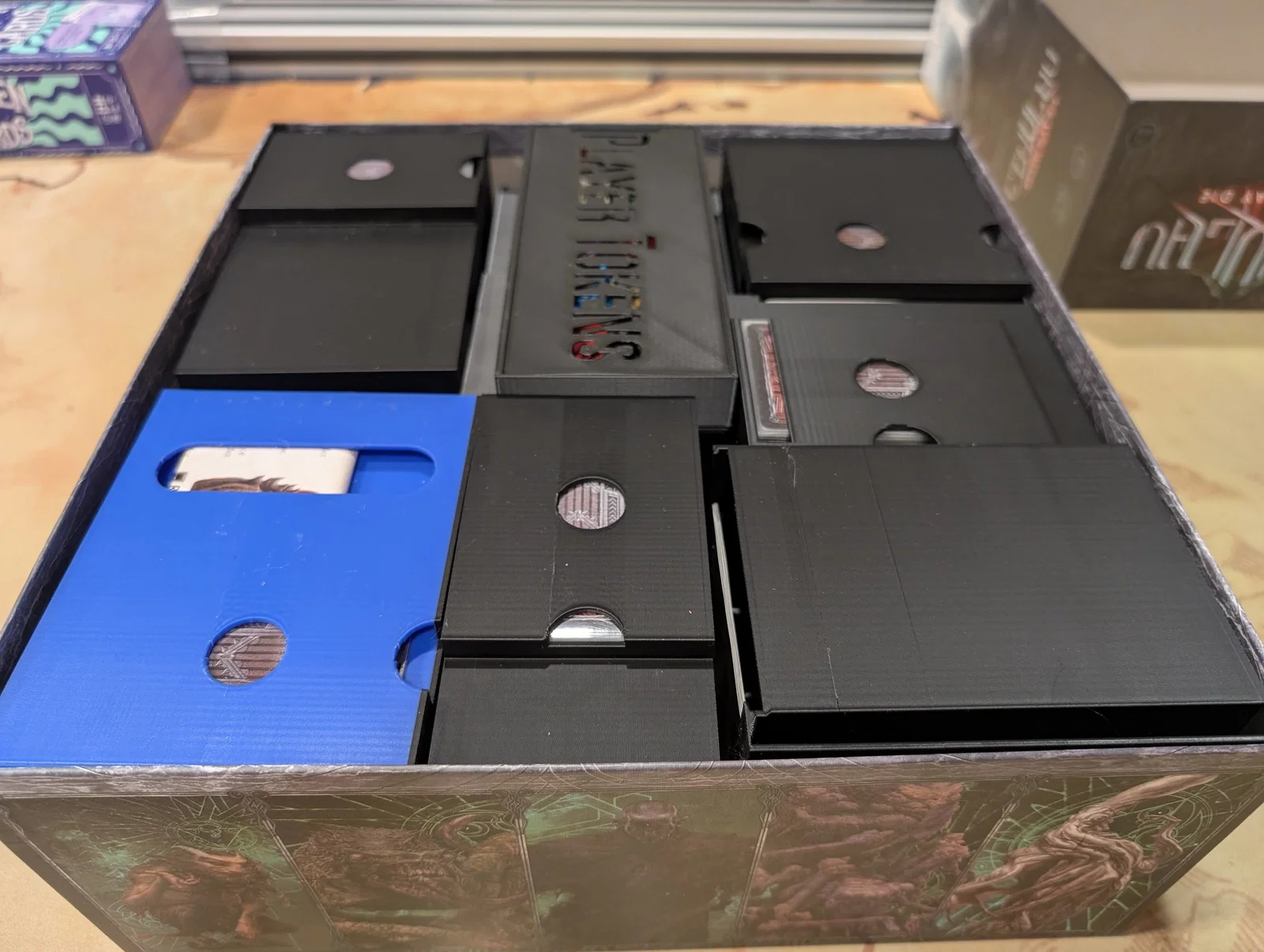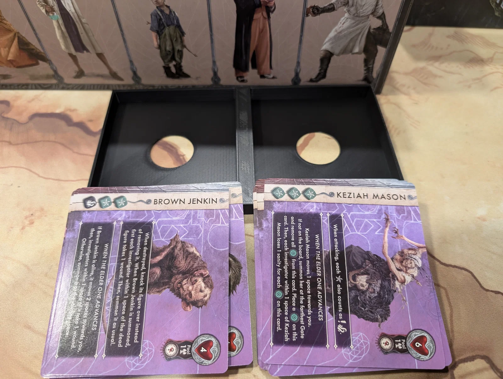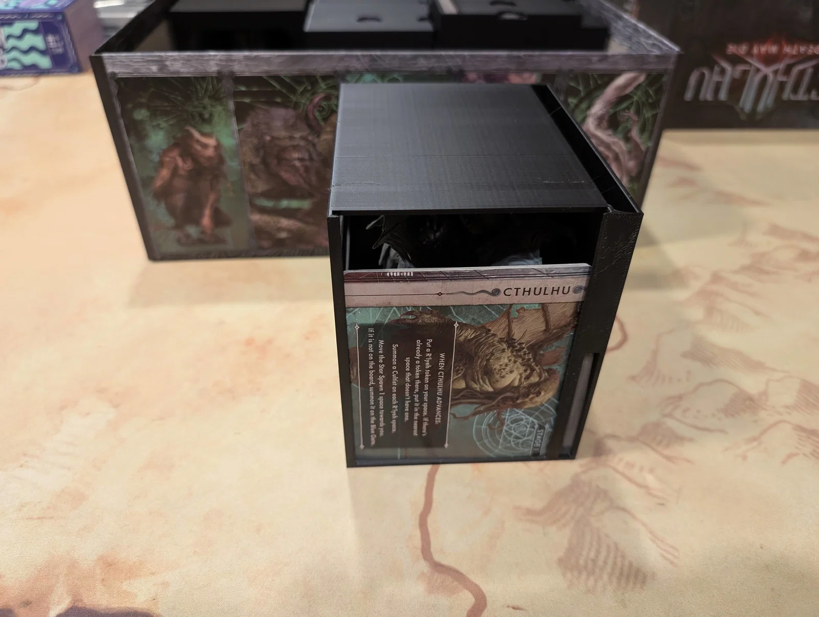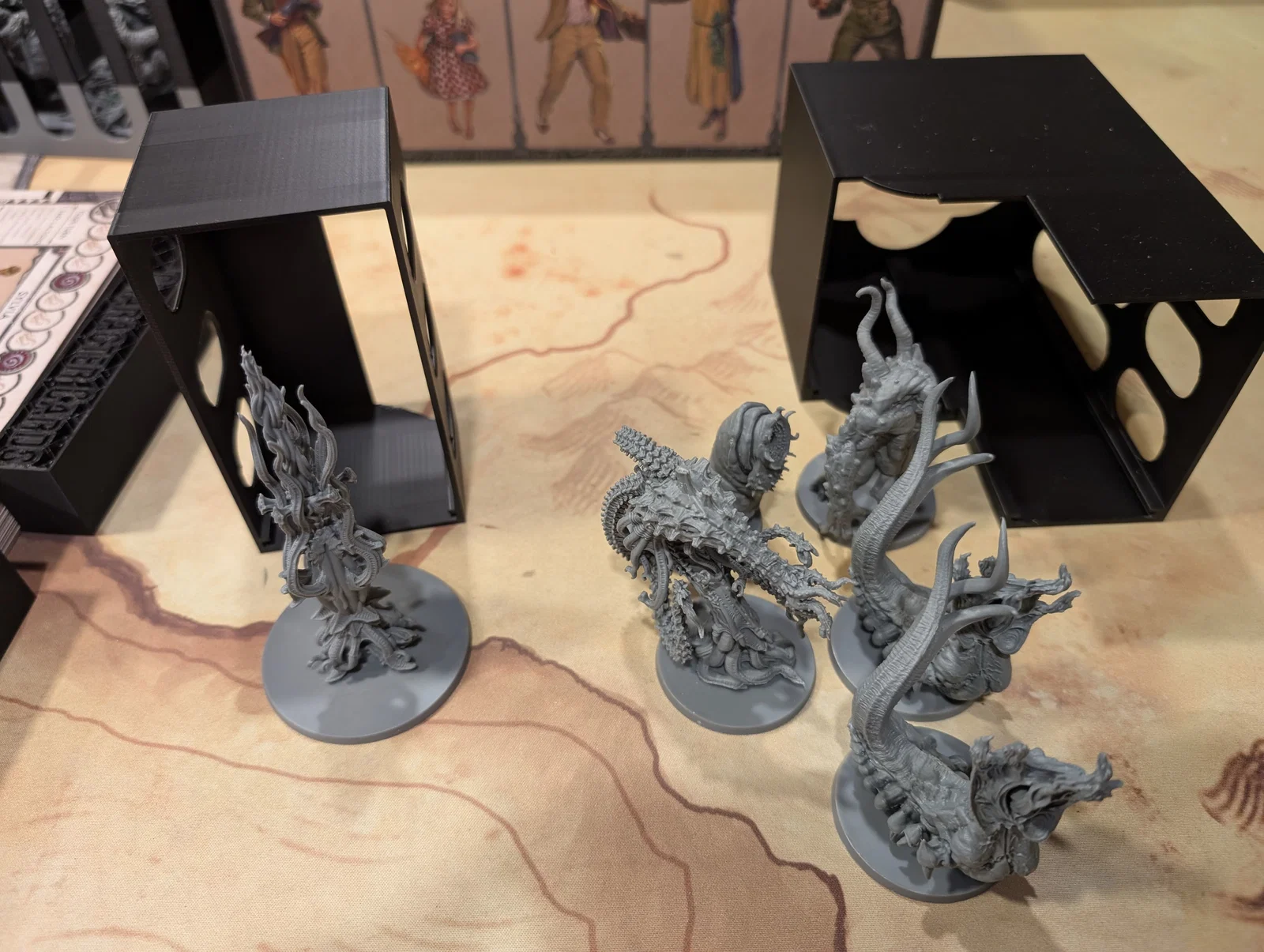 Mọi thứ được sắp xếp rất logic: một hộp cho các miếng ghép bản đồ (tiles), một hộp cho trùm/Elder One (ngoại trừ tên Nyanth chiếm quá nhiều chỗ), một hộp cho mô hình (minis), và hộp cuối cùng cho các tập phim cùng token.