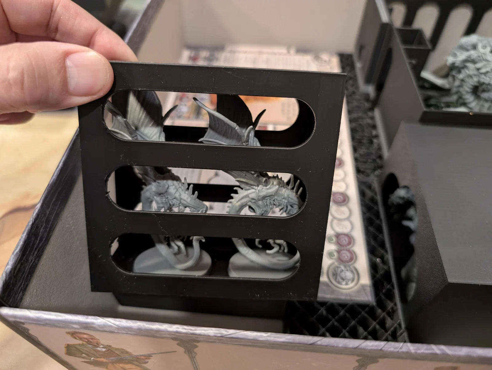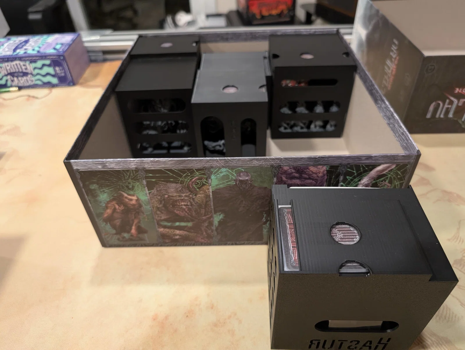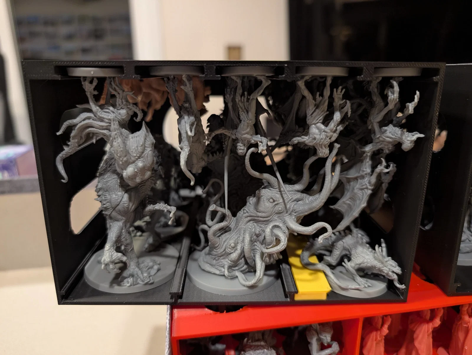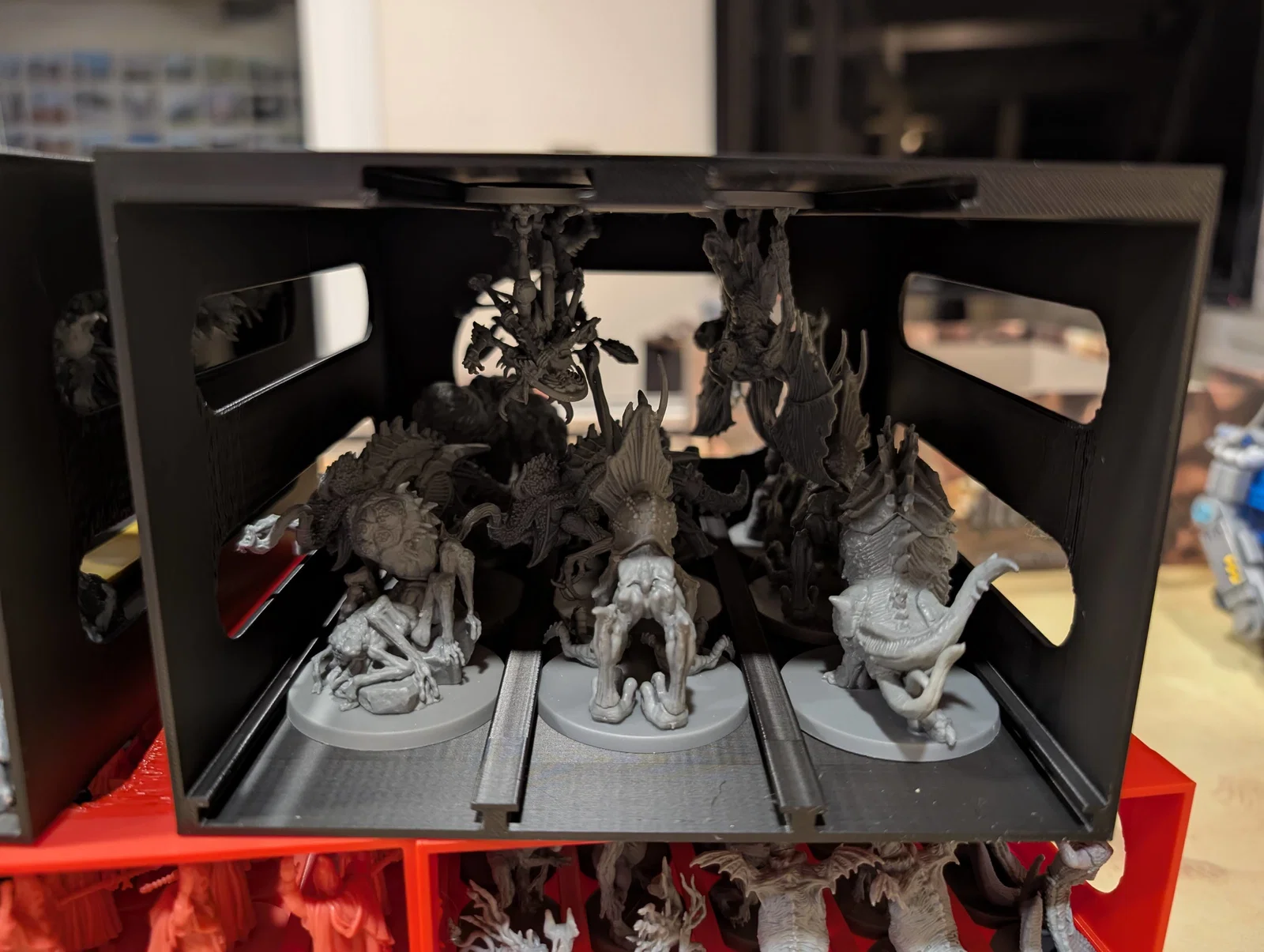• Lưu ý đặc biệt: Hastur là một ngoại lệ, tôi không thiết kế thanh trượt để cất vào hộp vì mô hình này có phần overhang quá lớn, nên tôi đã tận dụng phần vỏ nhựa đóng gói gốc rồi đặt vào hộp.