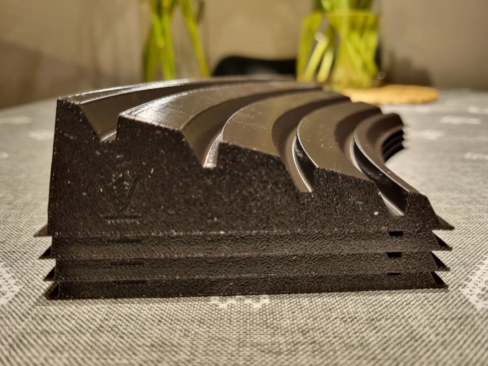 Mình in mẫu này bằng nhựa PLA, nhiệt độ bàn in 75 độ C, layer 0.2mm, sử dụng chế độ vase/spiral mode.