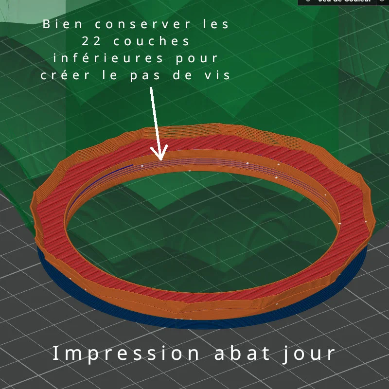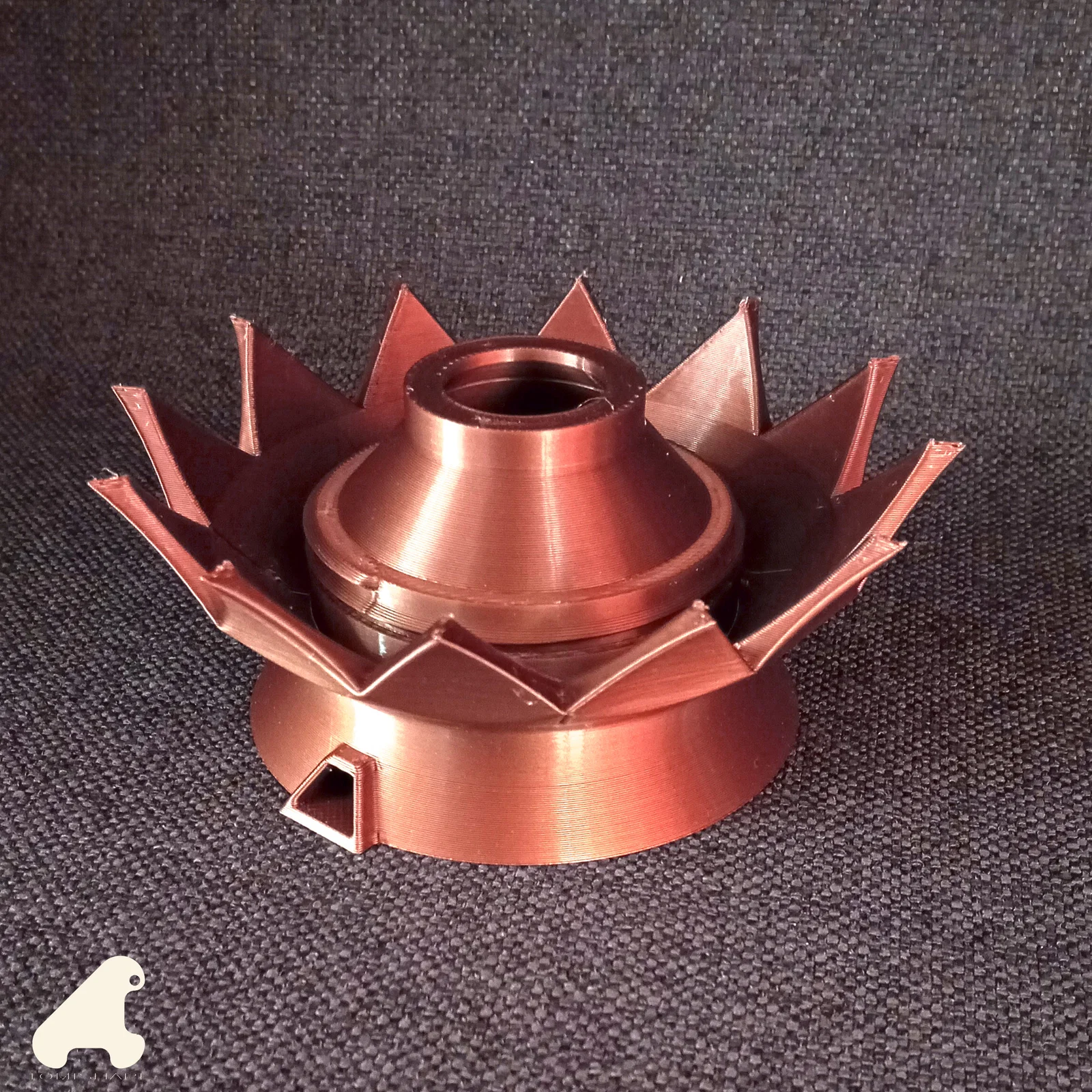 Chao đèn in ở Vase Mode. Các phần còn lại in ở chế độ thường. Sử dụng với đui đèn E14 và bóng LED (bắt buộc phải dùng bóng LED, không dùng bóng sợi đốt truyền thống vì lý do an toàn!). Hãy ưu tiên chọn loại bóng đèn cỡ nhỏ như trên ảnh minh họa.