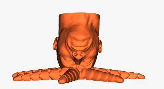 • Kỹ thuật in: Mô hình này được thiết kế đặc biệt để in ngược, vì vậy hãy đảm bảo mặt phẳng tiếp xúc với bàn in là phần đỉnh đầu của mô hình để có độ ổn định cao.