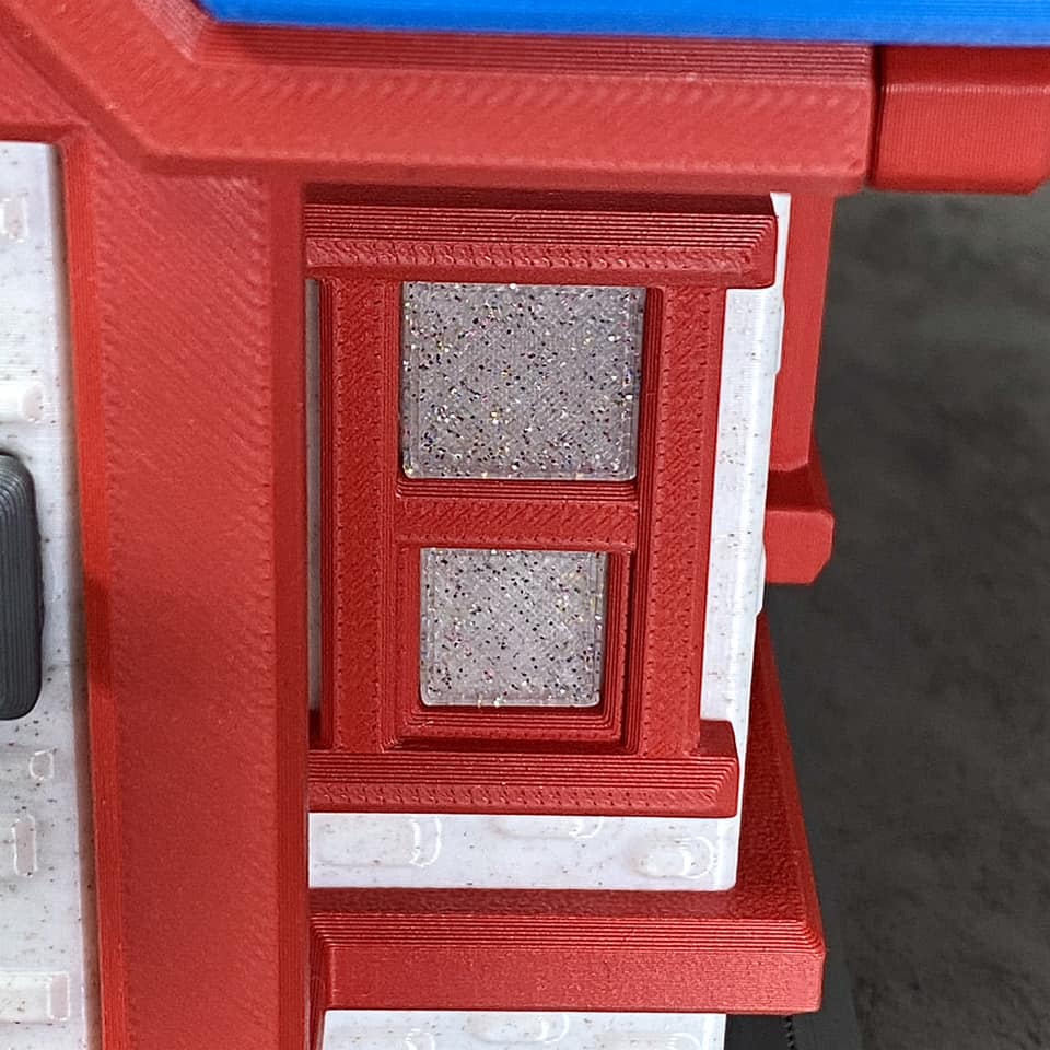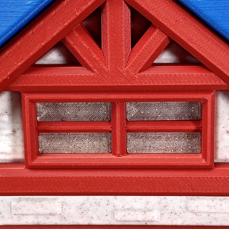 Bạn sẽ cần in các chi tiết sau: 1 x Bottom Cap, 1 x Central Roof, 1 x Chimney, 2 x Doorknobs, 2 x Doors, 2 x Front-Back Frames, 4 x Front-Back Window Frames, 1 x House Base, 1 x House Body, 4 x Lantern Bottoms, 4 x Lantern Centers, 4 x Lantern Poles, 4 x Lantern Tops, 2 x Side Frames, 2 x Side Rails, 2 x Side Window Frames, 1 x Top Roof, 8 x Window 1's, 8 x Window 2's, 4 x Window 3's, 4 x Window 4's, và 8 x Window 5's. Mỗi bộ phận cửa sổ đều có đánh số ở mặt dưới, tương ứng với các con số trên thân nhà (House Body). Dựa vào đó, bạn sẽ biết chính xác vị trí lắp đặt từng mảnh. Tất cả các chi tiết này đã được in thử nghiệm trên máy Bambu Labs X1 Carbon. Không cần dùng support (vật liệu hỗ trợ).