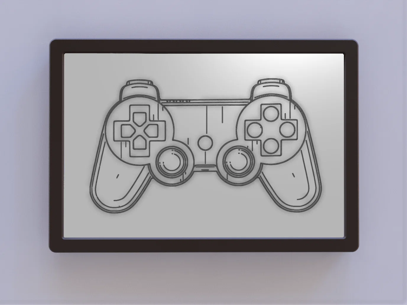 Tranh nghệ thuật 2D mô phỏng bản vẽ bằng sáng chế của tay cầm PlayStation DualShock. Thiết kế kèm khung treo tiện lợi, có tùy chọn phiên bản siêu mỏng giúp tiết kiệm vật liệu và thời gian in cho anh em đam mê in 3D.