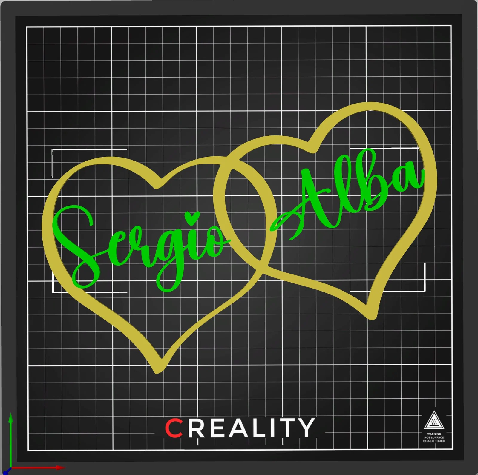 Mô hình hai trái tim lồng nhau in 3D với tên tùy chỉnh cực đẹp
