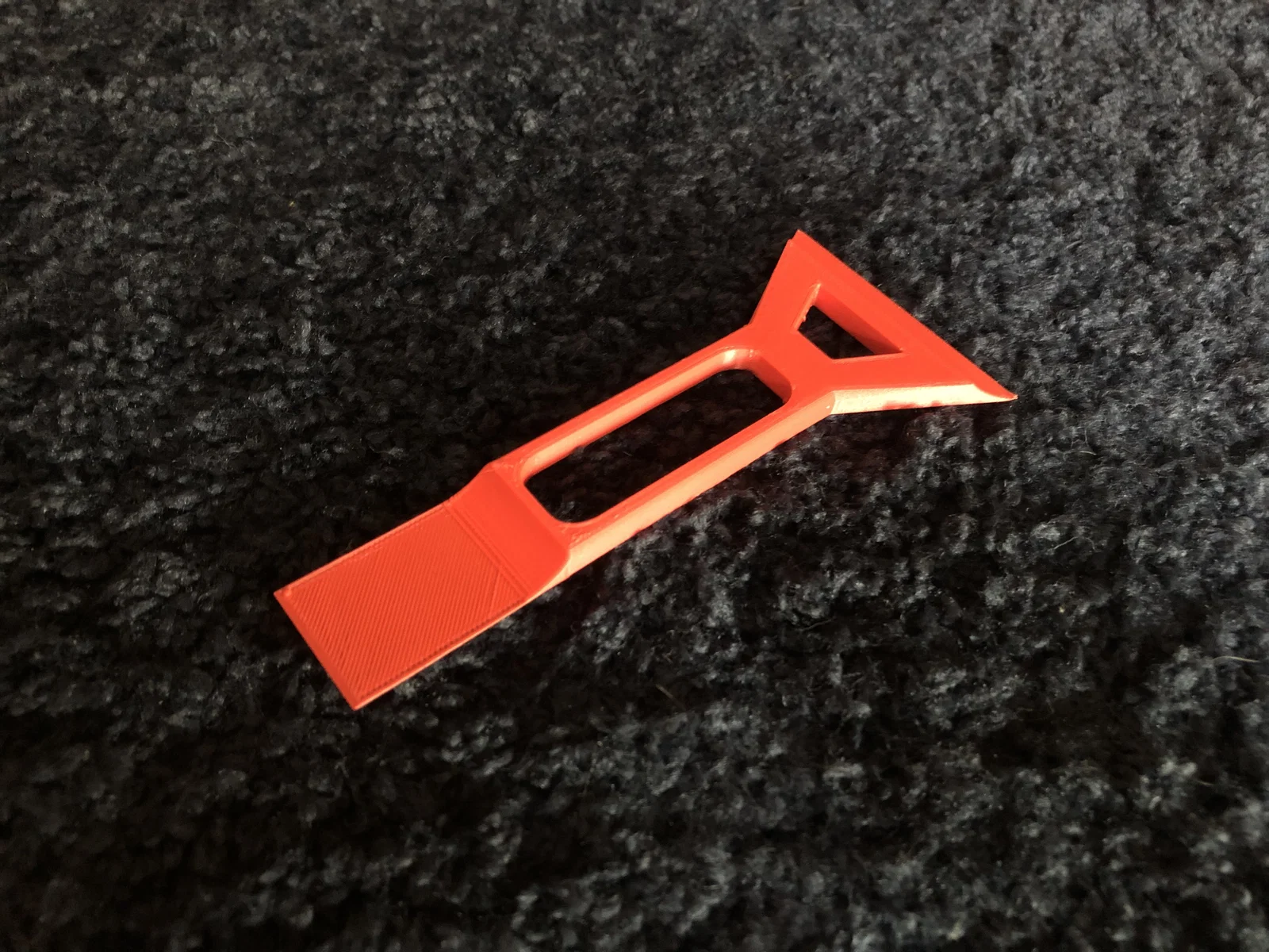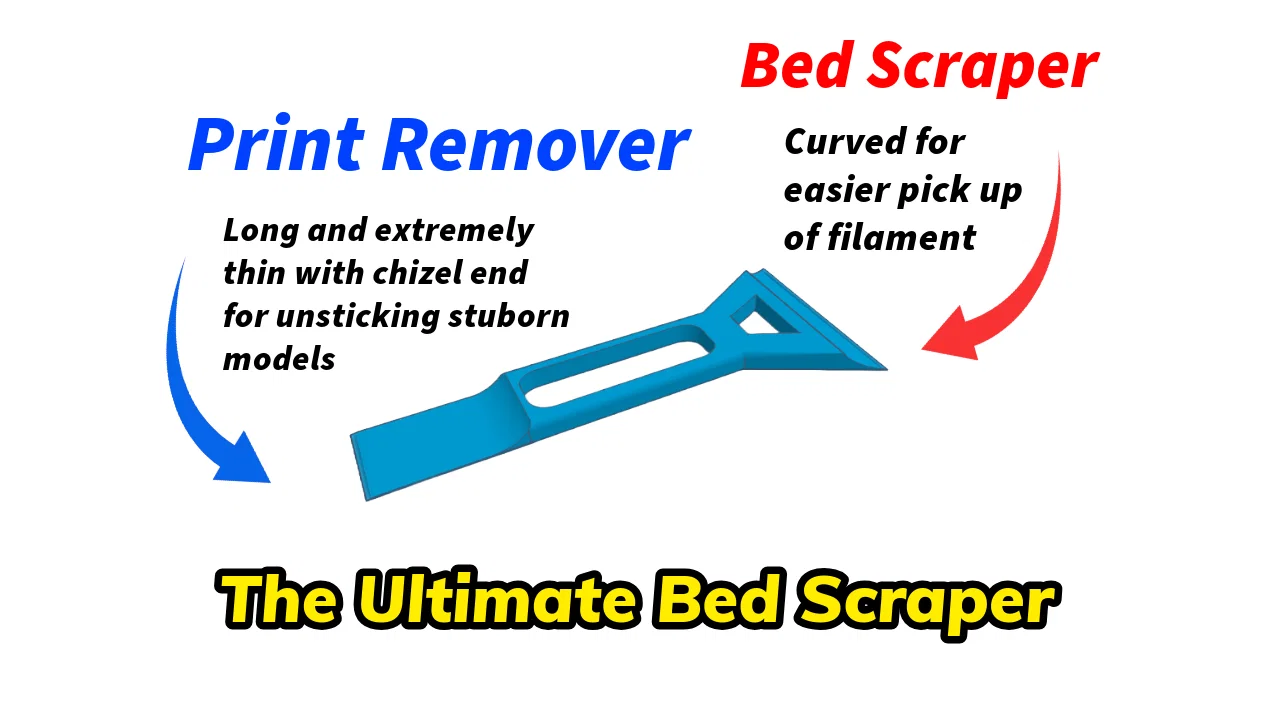 Cái nạo bàn in/dụng cụ gỡ mẫu Ultimate này là một thiết bị hai đầu vô cùng tiện lợi. Bạn có thể dùng đầu dài và mỏng để lách dưới đáy bản in, giúp gỡ mẫu ra khỏi bàn in một cách dễ dàng. Sau đó, dùng đầu ngắn và cứng hơn để cạo sạch những phần nhựa thừa còn sót lại trên bàn, ví dụ như đường skirt hay các vệt nhựa bị rỉ ra từ đầu phun (nozzle purge lines/blobs).