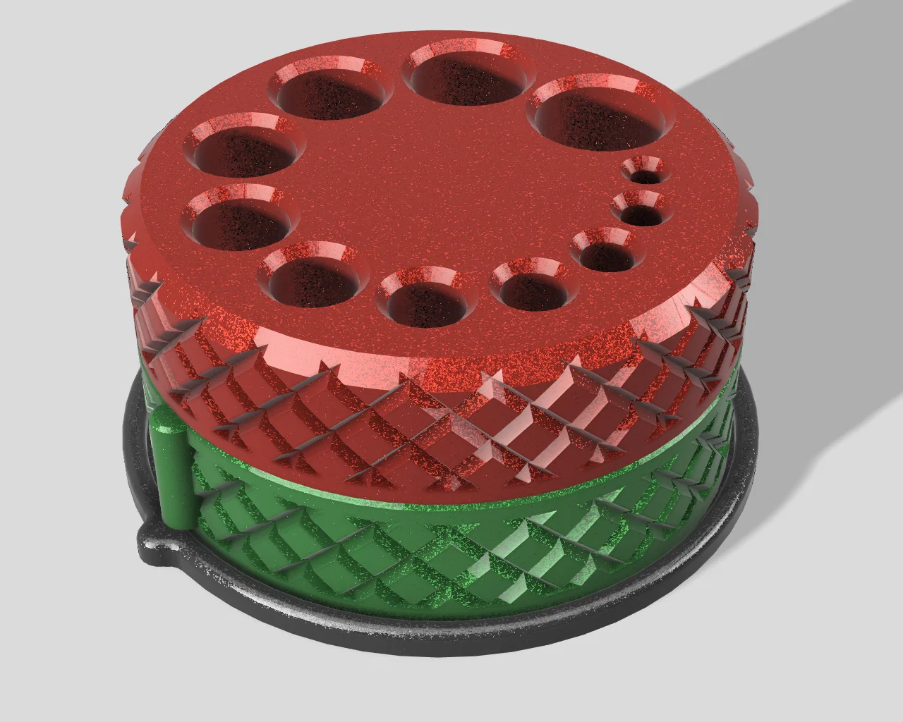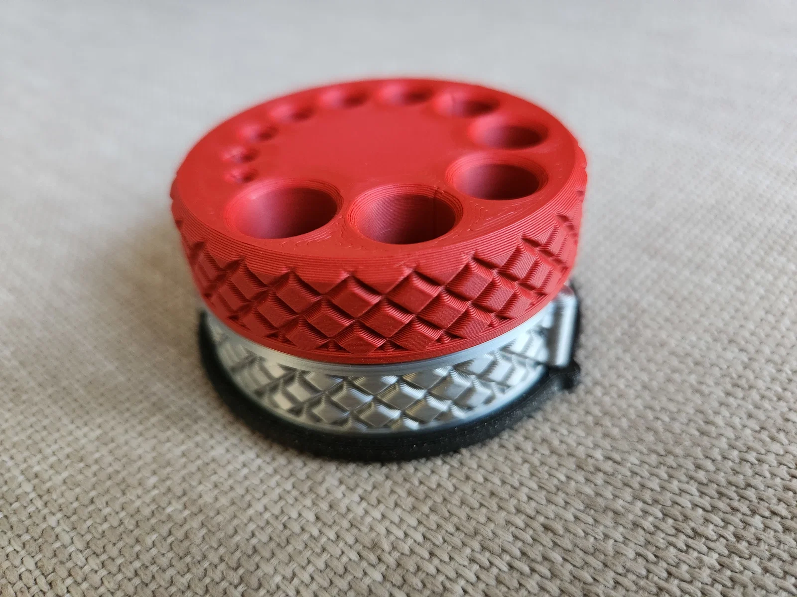 Mẫu này được thiết kế để in không cần dùng support hay brim, các file STL đã được đặt đúng hướng sẵn sàng trên bàn in. Sau khi in xong, các mảnh ở giữa và phía trước có thể khớp lại với nhau dễ dàng, không cần keo dán hay ốc vít gì thêm. Mình đã in cả ba mảnh của mẫu trong hình bằng nhựa PLA, nhưng nếu bạn có nhựa TPU thì dùng cho phần "nắp" bên dưới sẽ rất tuyệt đấy.