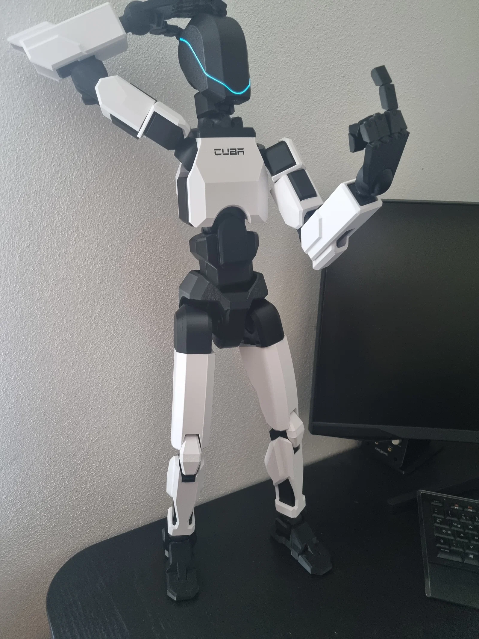 - Tính thẩm mỹ: Sử dụng nhựa màu đen cho vỏ đầu để tạo hiệu ứng tương phản mạnh mẽ với ánh sáng đèn LED, giúp chú robot trông ngầu và chuyên nghiệp hơn.