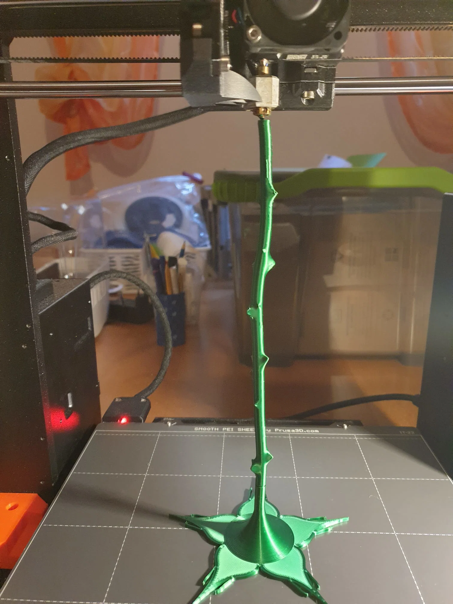 Màu đỏ thẫm của Fiberlogy (Fiberlogy Easy PET-G Transparent Burgundy) rất đẹp, hơi trong suốt, là màu sắc hoàn hảo cho một đóa hồng Valentine. Việc in trên máy MK4 của mình bằng profile đi kèm trong Prusa Slicer rất dễ dàng và không gặp vấn đề gì.