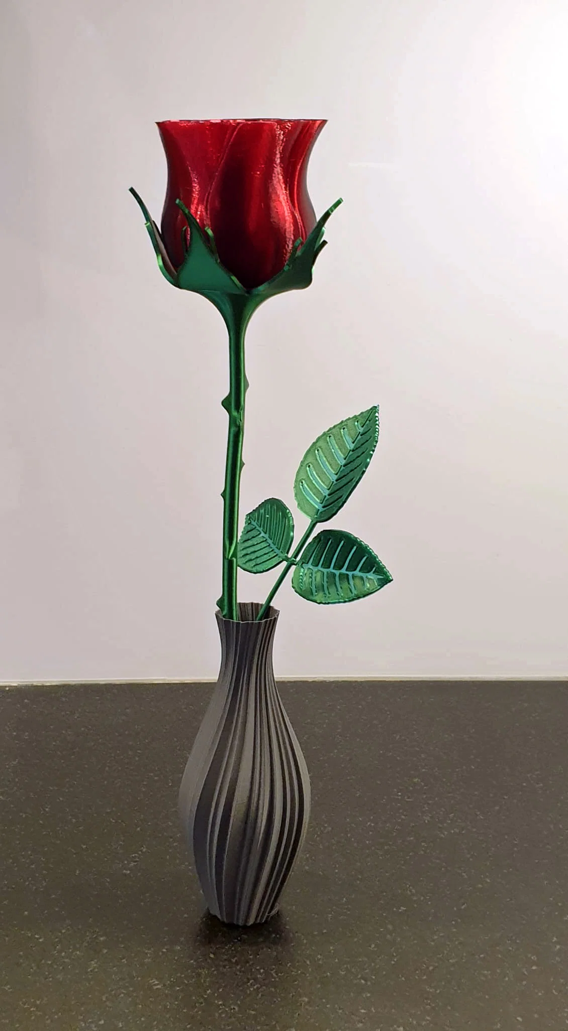 Món quà tuyệt vời cho ngày Valentine! Thân hoa hồng cao 220mm với thiết kế lá có thể uốn cong bằng nhiệt, cho phép bạn thay đổi bông hoa tùy thích. Dễ in, không cần support, món quà hoàn hảo để dành tặng người thương.