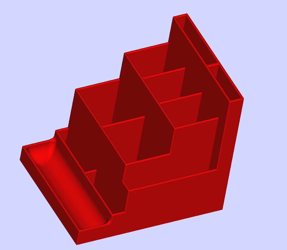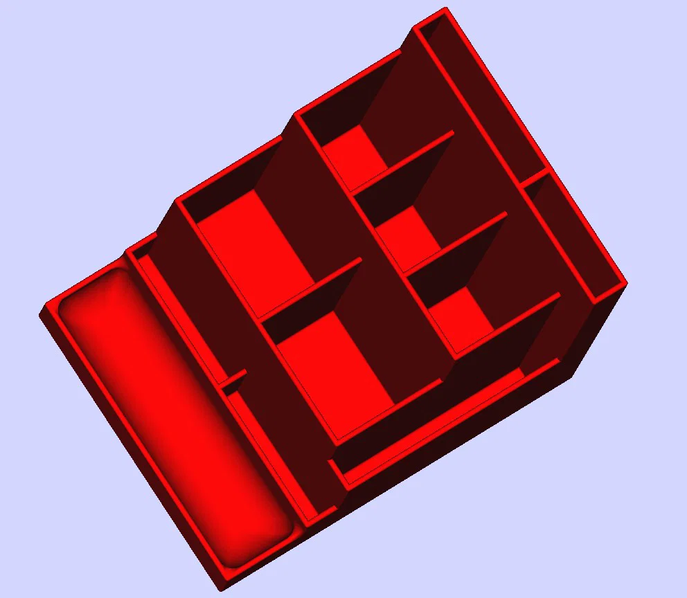Mẫu khay đựng đồ để bàn RH2 tiện lợi, được thiết kế tối ưu với các ngăn riêng biệt để sắp xếp thước kẻ, bút, marker, giấy note và kẹp giấy một cách gọn gàng, giúp không gian làm việc của bạn trở nên ngăn nắp và chuyên nghiệp hơn.