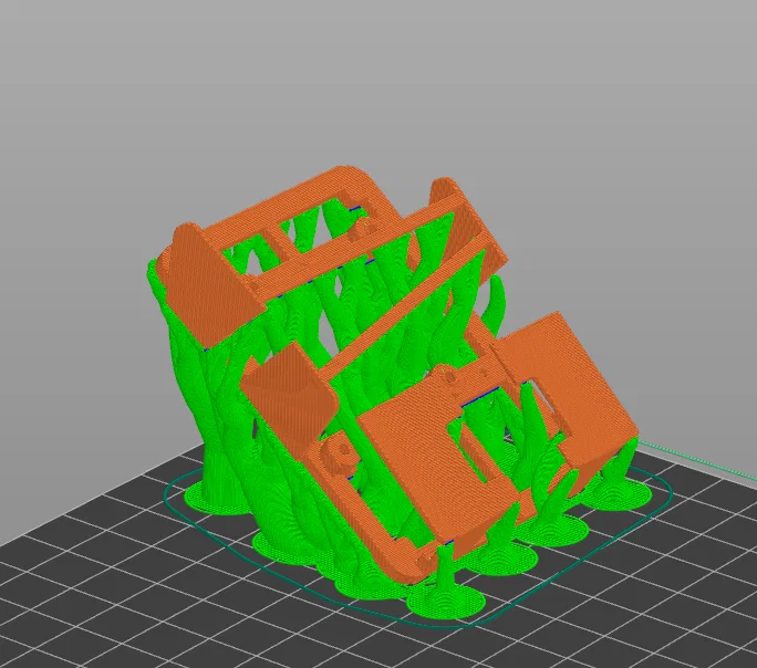 - Hỗ trợ (Support): Như hình ảnh hướng dẫn, bạn bắt buộc phải sử dụng hỗ trợ (đặc biệt là dạng tree support như trong ảnh) để đảm bảo các chi tiết mỏng manh không bị hỏng trong quá trình in.