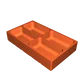 • Nếu bạn có dao dài hơn khổ máy in của mình, bạn cứ in một cái khay thật lớn rồi cắt nó ra theo các đường rãnh Gridfinity (xem ví dụ khay dao lớn trong ảnh chụp bên phải, vốn là 8x2 được cắt thành một cái 6x2 và một cái 2x2).