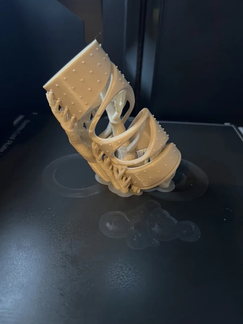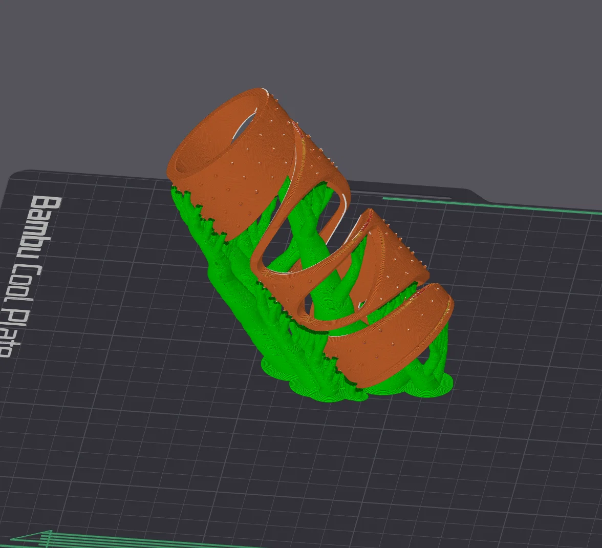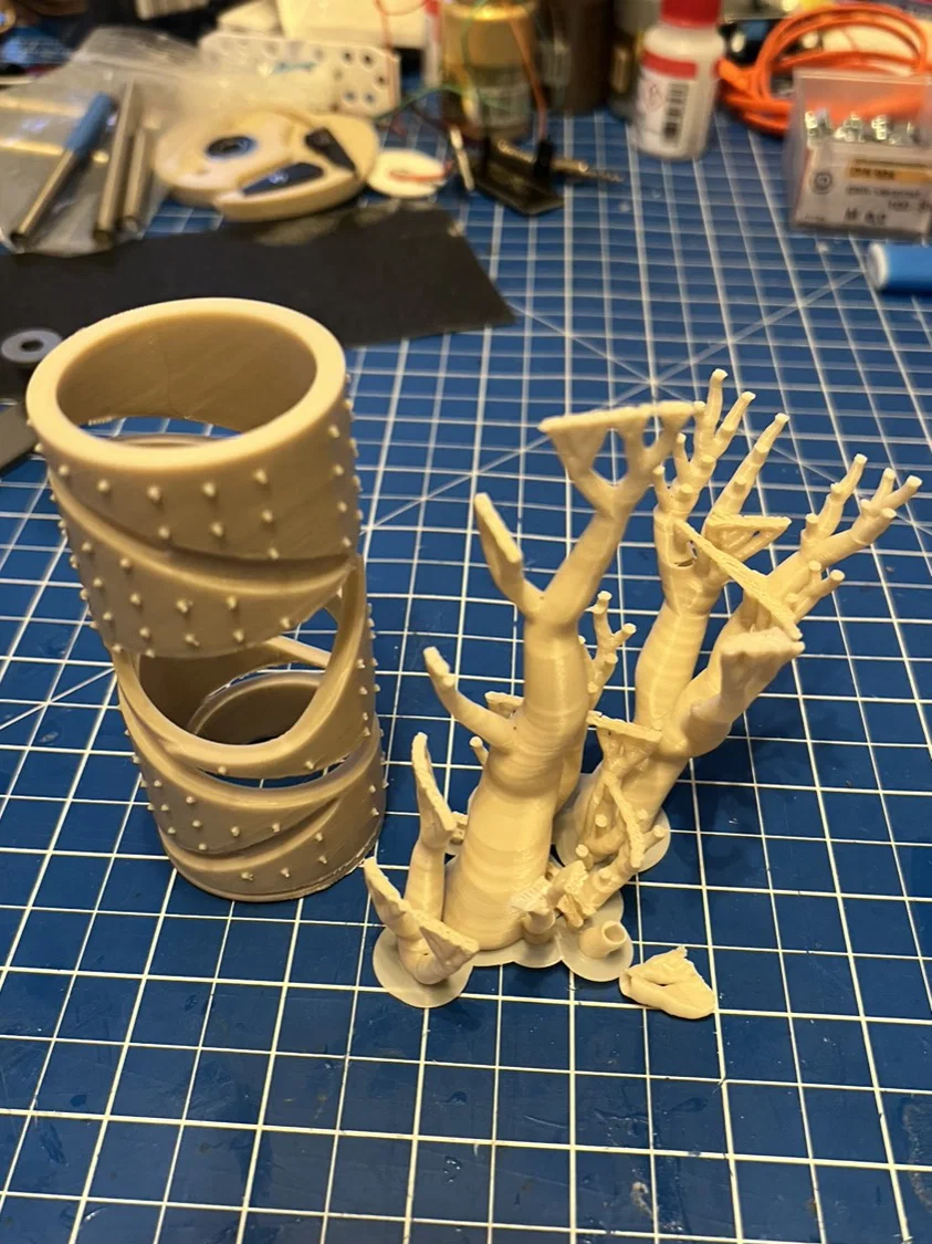 Máy của bạn cần được cân chỉnh tốt với Tree support. Điều quan trọng là phải đặt hướng trống như hình để tối ưu hóa bề mặt. Nếu tải bản STL mới nhất, trống đã được định hướng sẵn. Hãy dùng dụng cụ gỡ ba via (deburring tool) để làm mịn bề mặt sau khi tháo support.