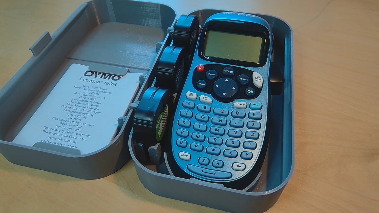 Hộp in 3D tiện dụng dùng để bảo quản máy in nhãn Dymo LetraTag 100H, sách hướng dẫn sử dụng và 3 băng nhãn dự phòng. Thiết kế thông minh với bản lề rời chắc chắn giúp bạn sắp xếp dụng cụ gọn gàng hơn.