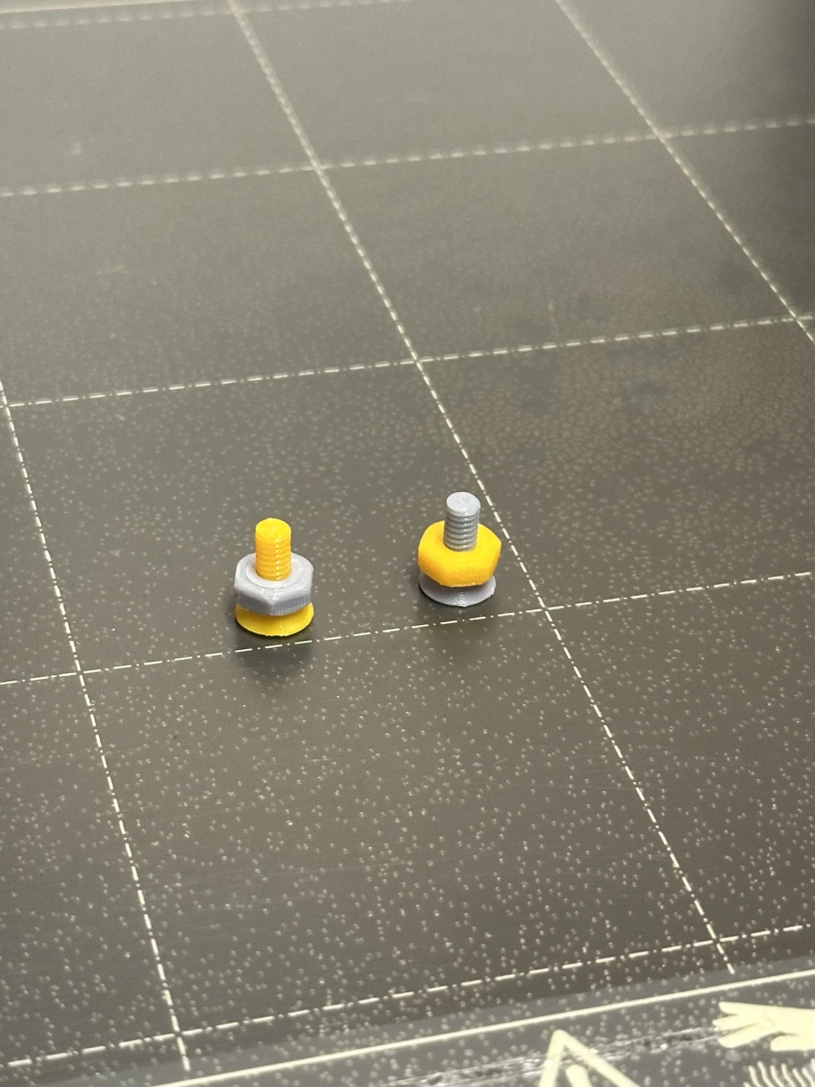 Phiên bản tùy chỉnh của https://www.thingiverse.com/thing:193647 được tạo bằng Customizer! https://www.thingiverse.com/apps/customizer/run?thing_id=193647### Các thông số Customizer (Customizer Parameters)type = bolt, head_type = countersunk, drive_type = phillips, head_diameter = 8, head_height = 3, drive_diameter = 4, slot_width = 1, slot_depth = 2, texture = include, thread_outer_diameter = 4, thread_step = 0.7, step_shape_degrees = 45, thread_length = 8, countersink = 2, non_thread_length = 0, non_thread_diameter = 0, nut_type = normal, nut_diameter = 12, nut_height = 6, nut_thread_outer_diameter = 9, nut_thread_step = 2, nut_step_shape_degrees = 45, wing_ratio = 1, inner_diameter = 8, outer_diameter = 14, thickness = 2, facets = 6, socket_facets = 6, socket_depth = 3, resolution = 0.5Cập nhật 27/06/2023: Đã thêm file .gcodeCập nhật 03/02/2025: Đã bổ sung thêm hình ảnh, thiết lập in và ghi chúThiết lập in (Print Settings)- Máy in: Prusa i3 MK3S+- Rafts: Không- Supports: Không- Loại support: n/a- Đầu phun (Nozzle): 0.4 mm- Độ phân giải: 0.1 mm- Độ đặc (Infill): 15%- Loại Infill: Gyroid- Nhựa in (Filament): PLA, PETGĐã in bằng: Spool3D Gray PLA, Polymaker PolyLite Yellow PETGGhi chú: Hãy in theo hướng hiển thị. Dung sai rất khít nên mình khuyên anh em sau khi in xong nên dùng đai ốc M4 kim loại để vặn vào làm sạch ren, nhất là khi dùng bulong với đai ốc in 3D. Lưu ý: Nếu in bằng nhựa PETG và dùng kèm với đai ốc cũng in bằng PETG, chúng sẽ bị rít hơn nhiều so với khi in bằng PLA. Vì vậy, mình khuyên anh em nên giảm kích thước bulong trên trục X và Y xuống còn 99% và tăng kích thước đai ốc trên trục X và Y lên 101%.