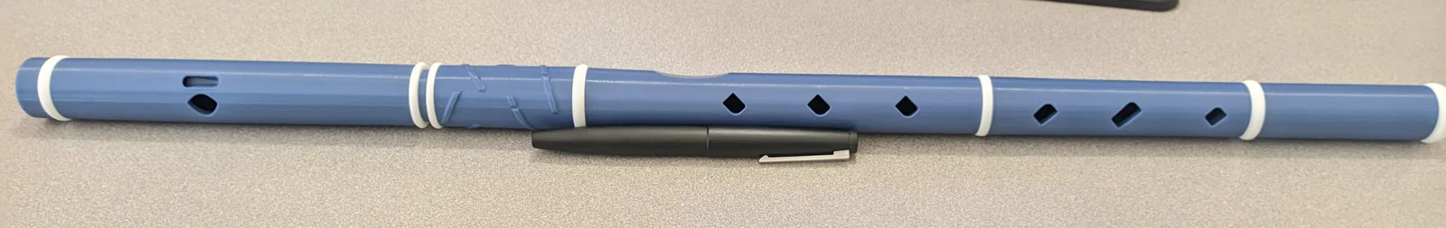 Đây là cây sáo "Irish" đầy đủ chức năng, loại mở lỗ (open-hole) ở tông D và không có phím bấm. Âm sắc khá tốt, hòa hợp được với các video sáo khác mà tôi tìm thấy trên mạng. Với tôi, nó nghe như một cây sáo gỗ. Sau một ngày tập luyện, tôi đã có thể thổi được các âm giai D và G trưởng, và giờ đang học thêm vài bản nhạc mới. Tôi thấy đầu tư 5$ tiền nhựa PLA và vài giờ in ấn là hoàn toàn xứng đáng. Mẫu sáo này do Marat Axianoff thiết kế – một nghệ nhân làm sáo người Nga có kinh nghiệm phục chế sáo cổ. Mục tiêu của Marat là tạo ra một nhạc cụ dựa trên các mẫu sáo lịch sử mà không cần gia công hậu kỳ, ngoại trừ việc quấn khớp nối.