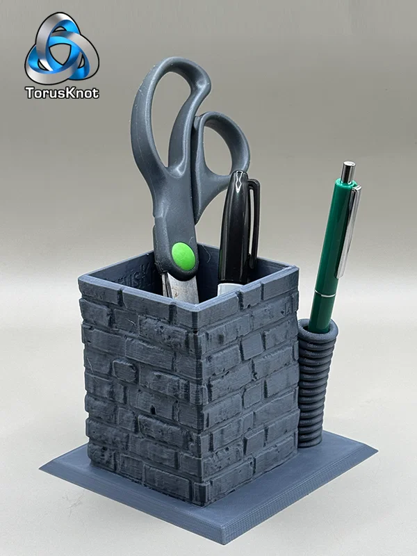 Mẫu ống cắm bút độc đáo với hình ảnh lò xo "ló đầu" qua bức tường gạch, mang lại cảm giác mùa xuân vui tươi cho góc làm việc. Thiết kế in liền khối (print-in-place), không cần support, cực kỳ hữu ích và đầy tính sáng tạo.