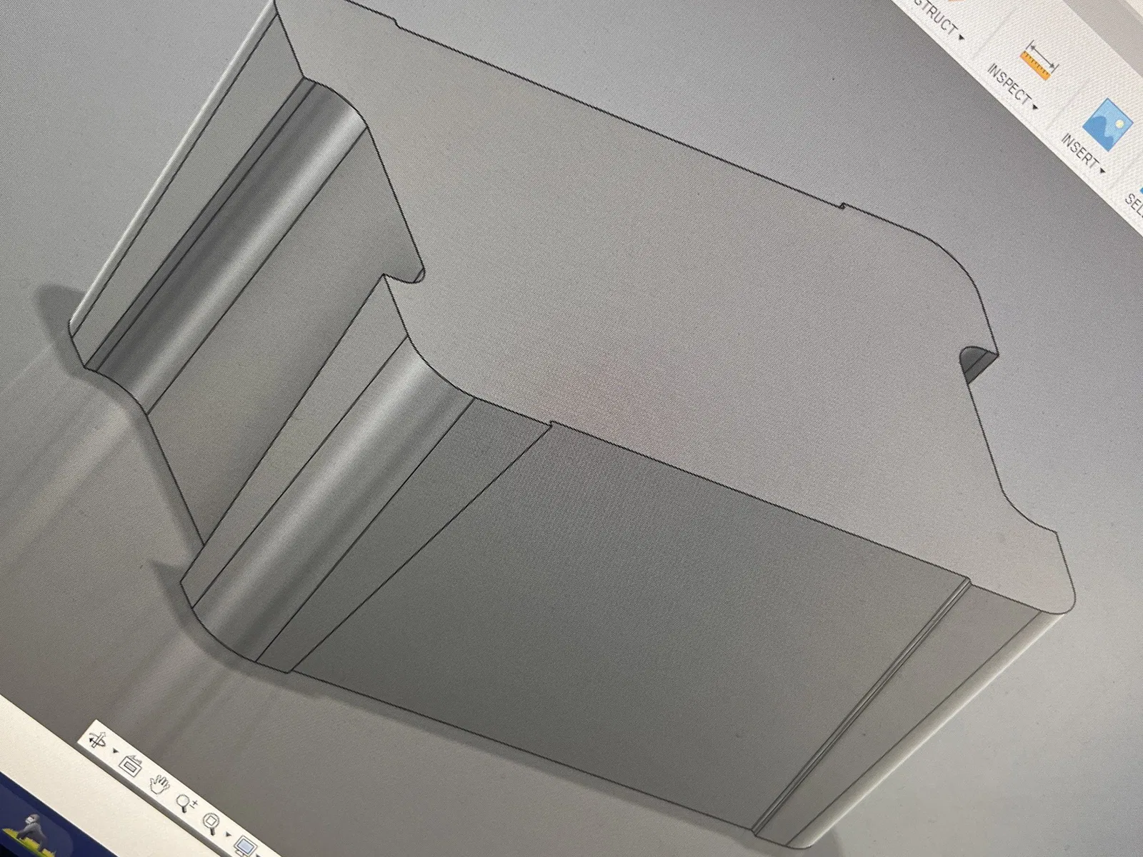 Mô hình lưu trữ Bước và Fusion 360 của không gian bên trong của thùng lưu trữ 1GAL/5L IKEA SAMLA.