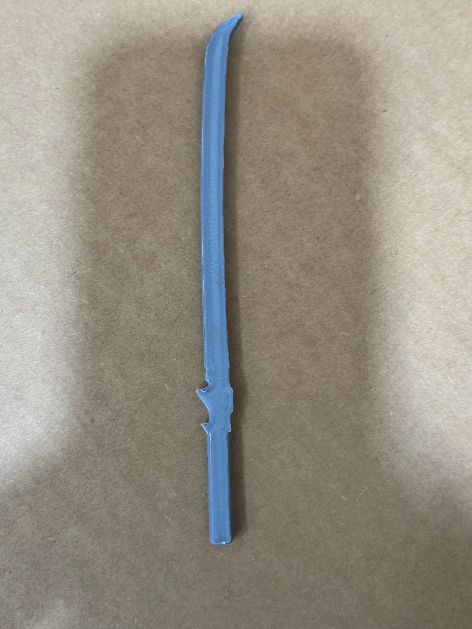 • Nên đặt mô hình nằm phẳng (print flat) trên bàn in để đạt độ bền tối đa và bề mặt chi tiết nhất cho lưỡi kiếm.