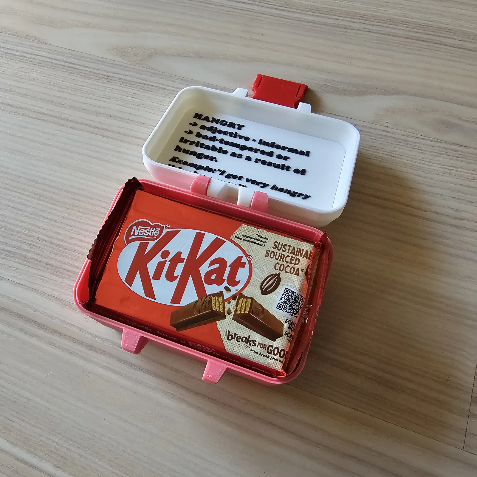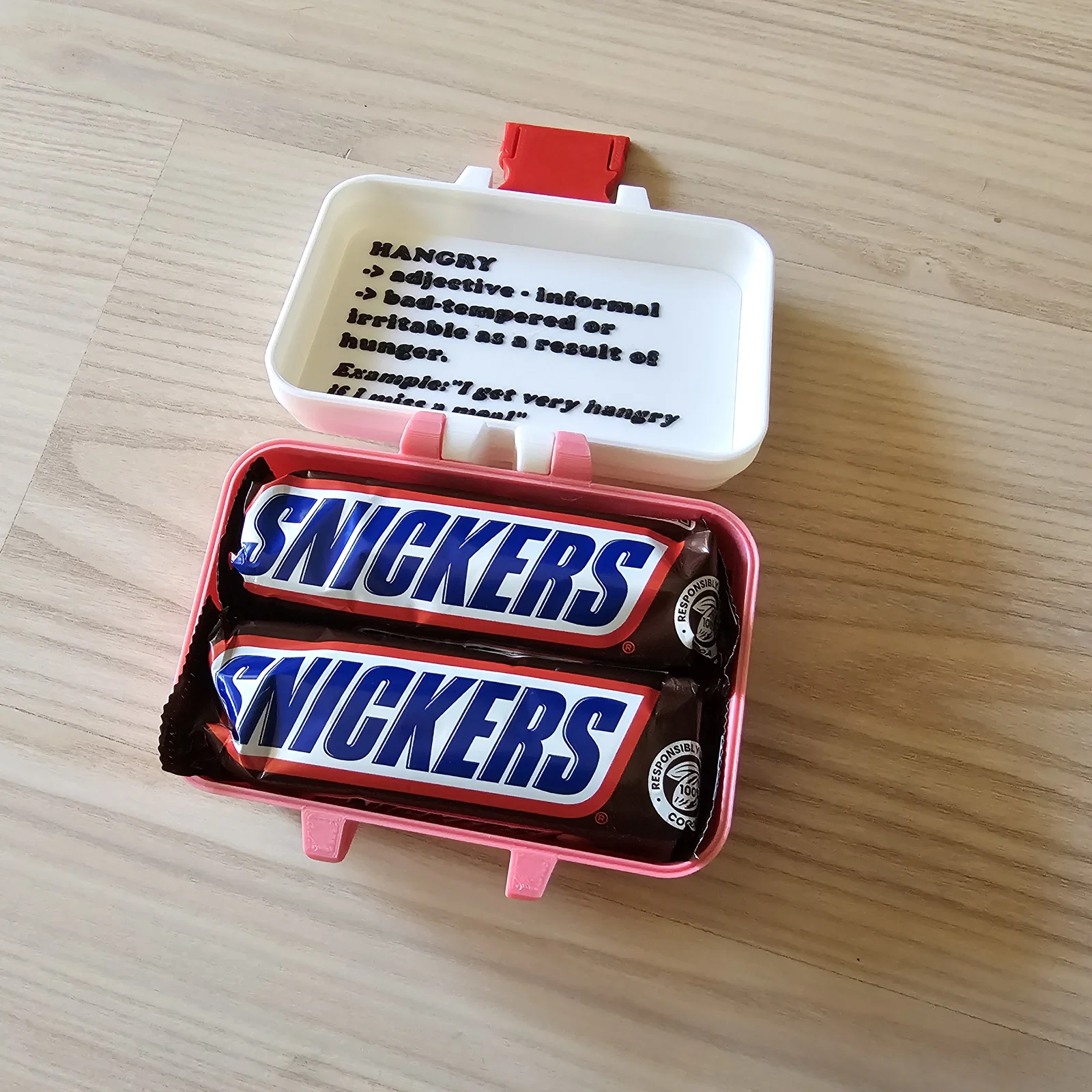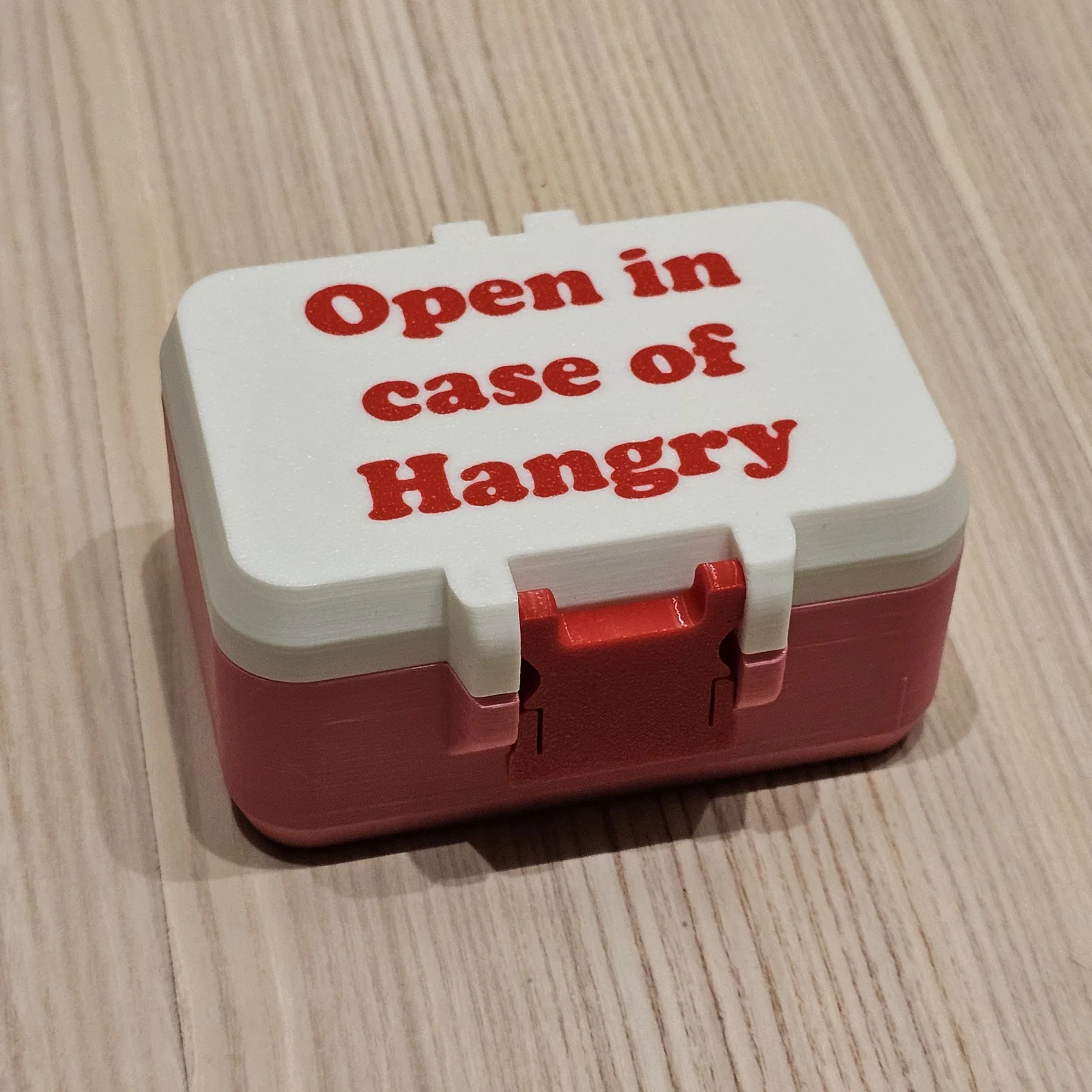 Mình xin giới thiệu chiếc hộp SOS Hangry Box - giải pháp cứu cánh tuyệt vời cho những khoảnh khắc cơn đói và tâm trạng cáu kỉnh ập đến cùng lúc! Nhân dịp Valentine sắp tới, còn gì ý nghĩa hơn khi tặng một món quà độc đáo, tâm lý để thể hiện sự quan tâm của bạn. Trong chiếc hộp in 3D này, bạn có thể cất những loại chocolate hoặc món ăn vặt yêu thích của nửa kia, sẵn sàng sử dụng mỗi khi có tình huống khẩn cấp vì... "đói mà giận" (hangry).