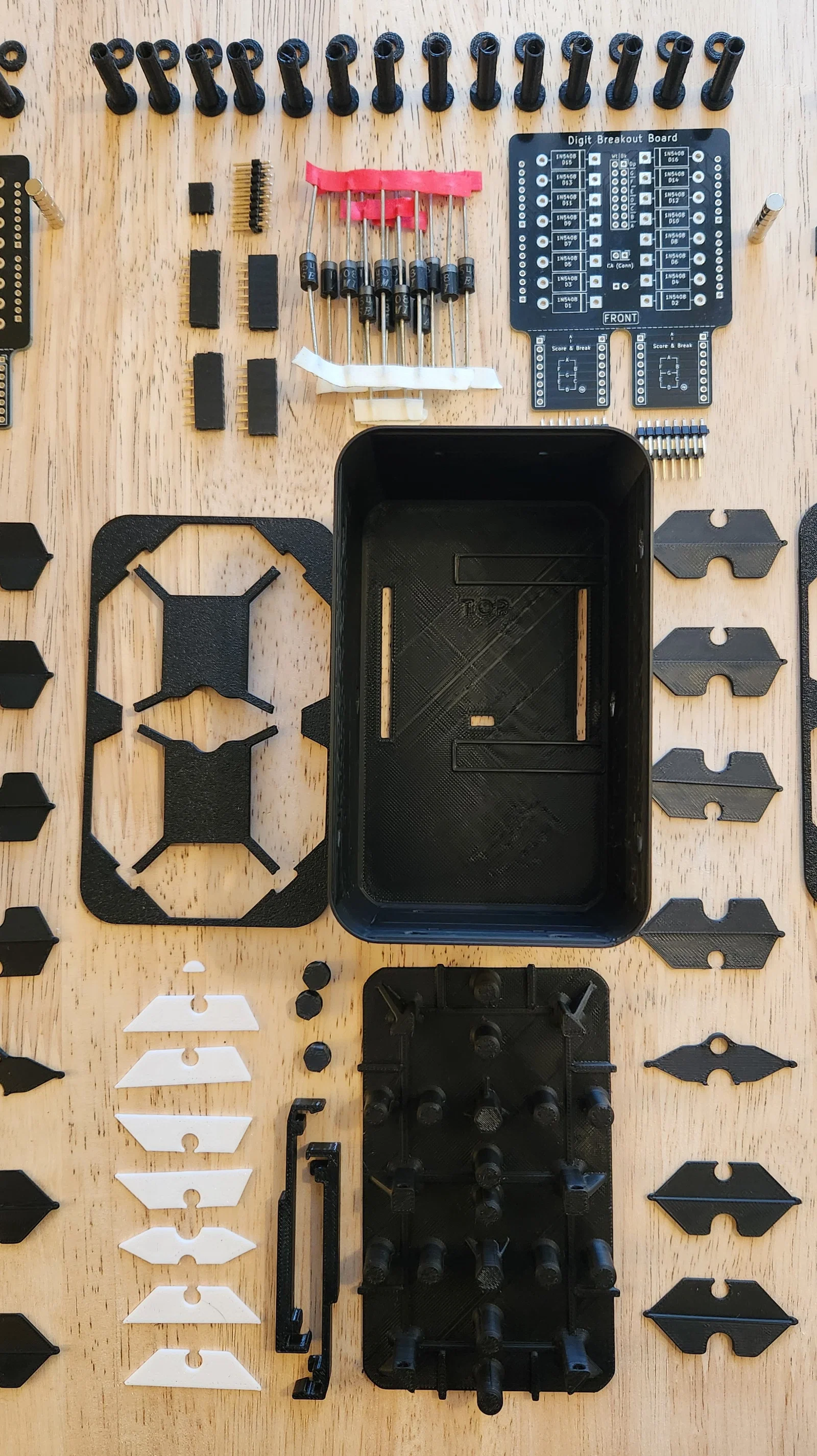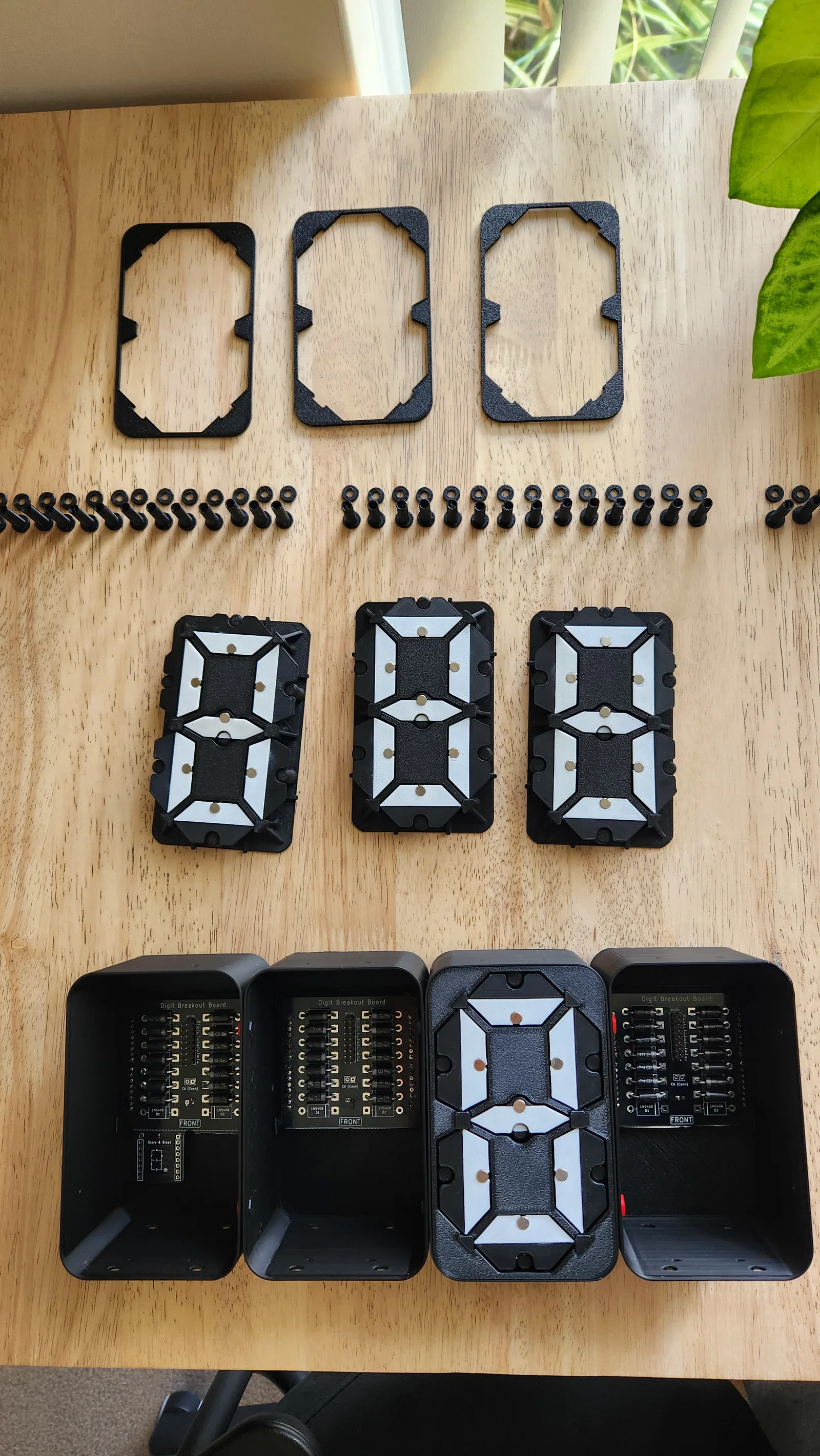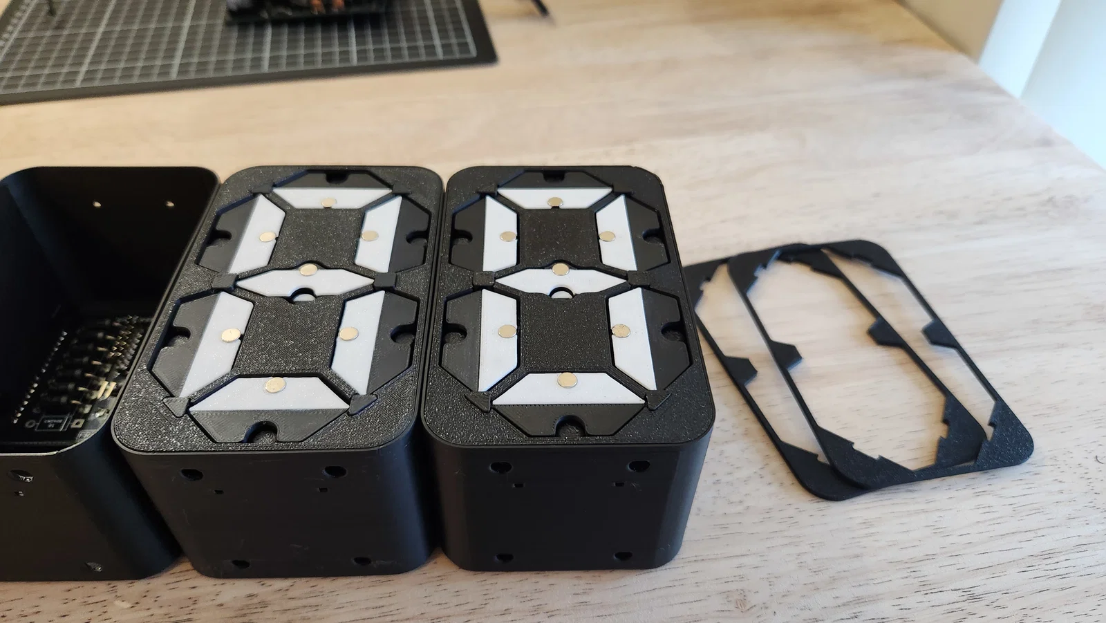 PHIÊN BẢN 2 ĐÃ RA MẮT! BẤM VÀO ĐÂY ĐỂ XEM! Giới thiệu Flippy! Màn hình hiển thị 7 thanh cơ điện dạng module được in 3D tất cả trong một. Bằng cách sử dụng 14 nam châm điện, mỗi chữ số có thể hiển thị nhanh chóng và linh hoạt cả số lẫn chữ. Điều này tạo nên một hiệu ứng hiển thị độc đáo và cực kỳ đã mắt. Để tự lắp ráp, mọi người hãy xem hướng dẫn chi tiết trên Instructables tại đây: https://www.instructables.com/3D-Printed-Electromechanical-7-Segment-Display/ Hãy in tất cả các bộ phận bằng nhựa PLA, riêng kẹp PCB thì nên dùng nhựa PETG để có độ bền tốt nhất. Mọi người in các bộ phận chính bằng "màu chủ đạo" (như của mình là màu đen), sau đó in các bộ phận "màu trắng" bằng "màu phụ". Hầu hết các chi tiết đều in được mà không cần support, ngoại trừ đĩa IR và vỏ hộp linh kiện cùng nắp đậy. Nếu dùng Orca (hoặc Bambu) slicer, mình rất khuyến khích mọi người sử dụng file .3mf đã được cung cấp sẵn. DÀNH RIÊNG CHO SPOOLER: Nếu bạn đang làm spooler, bạn sẽ cần thêm giá đỡ servo. Những cái mình đã dùng có thể tìm thấy ở đường link bên dưới. Mình không thể chia sẻ trực tiếp file do vấn đề về bản quyền: https://makerworld.com/en/models/423292