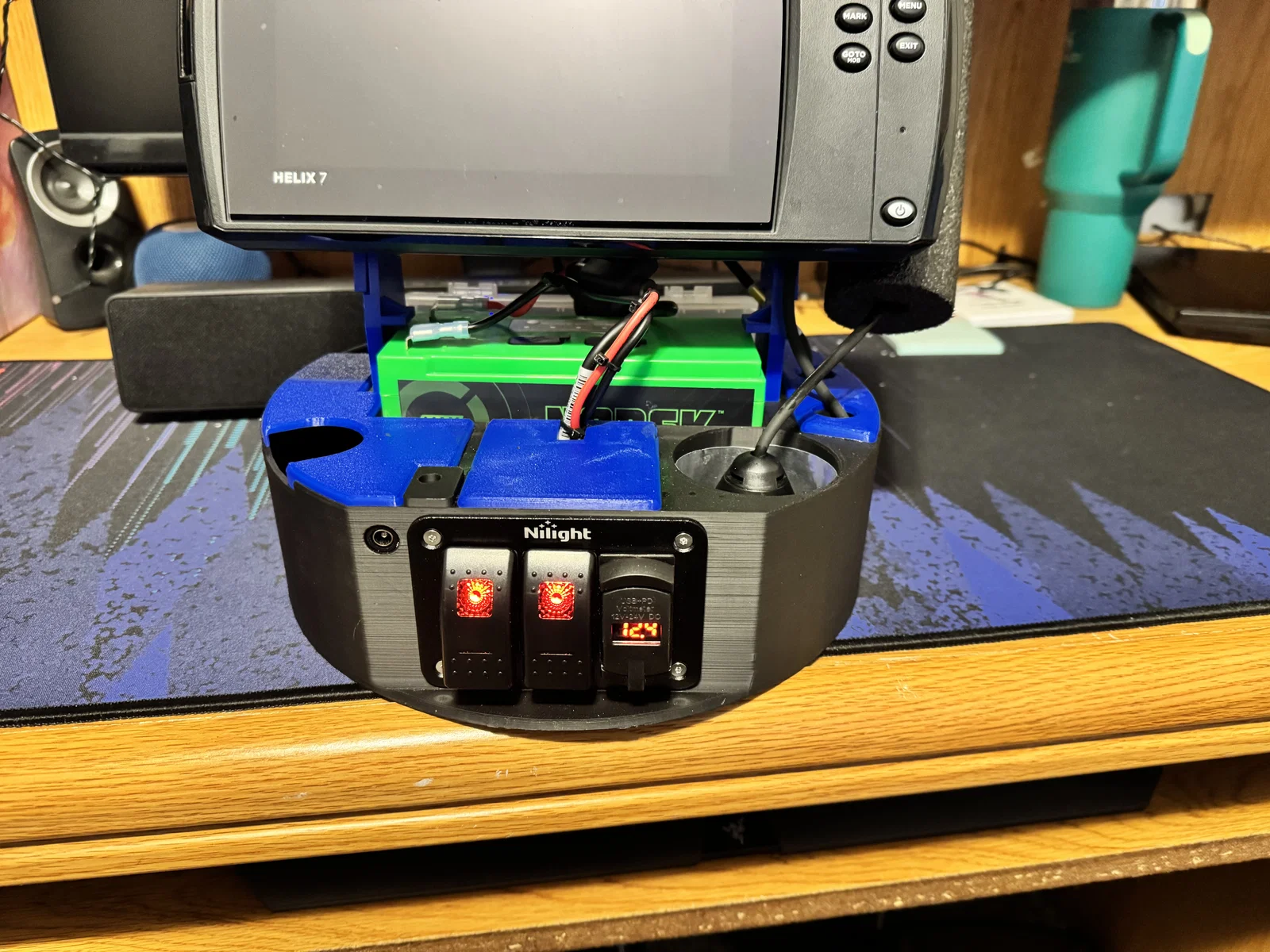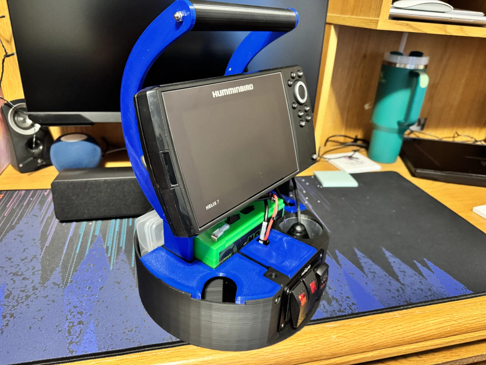 Mình tạo ra mẫu này với mục tiêu là một bộ khung (shuttle) câu cá trên băng có thể in 3D giá rẻ dành cho Hummingbird Helix 7. Hiện tại mình chưa hỗ trợ các dòng máy câu cá trên băng khác, nhưng rất hoan nghênh mọi người thực hiện các bản tùy chỉnh (remix). Bộ khung này bao gồm giá đỡ 3 vị trí cho cần câu, tích hợp sẵn cốc phát sáng (glow cup), các ngăn để kìm và kéo, chỗ cất dây thừa cho đầu dò (transducer) và vừa vặn trong thùng tiêu chuẩn 5 gallon. Do kích thước lớn, mẫu này hầu như không vừa với các bàn in thông thường, nhưng hoàn toàn vừa với máy in dòng Bambu Labs P1, X1 hoặc các máy lớn hơn. Việc lắp ráp tương đối đơn giản nhưng có thể hơi khó khăn do không gian hạn chế và các lỗ bắt vít nhiệt (heat set inserts) đặt theo góc ở tay cầm.