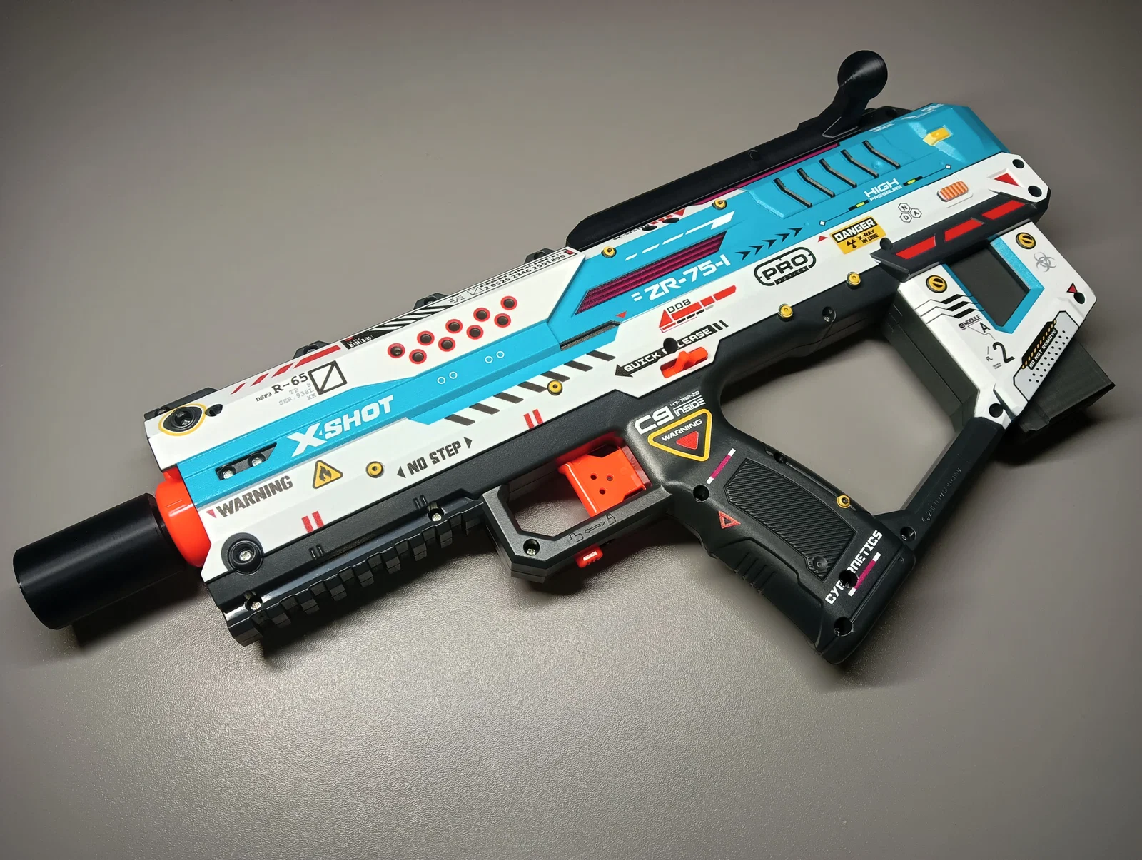 Mình đã rút ngắn nòng Whisker SCAR xuống còn 60mm và thiết kế thêm một lớp vỏ giả ống giảm thanh bên ngoài.