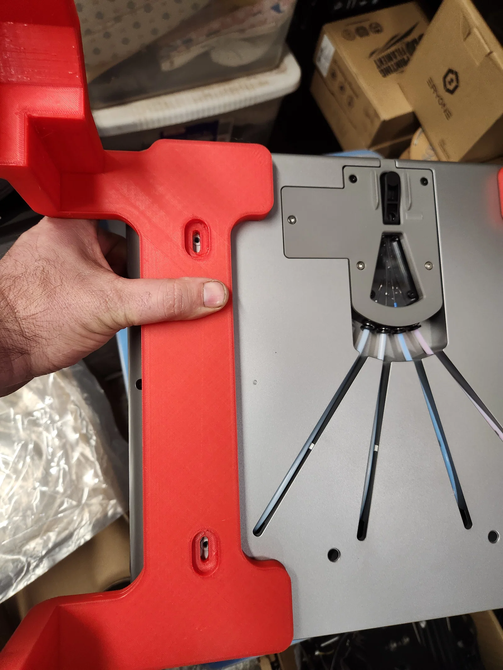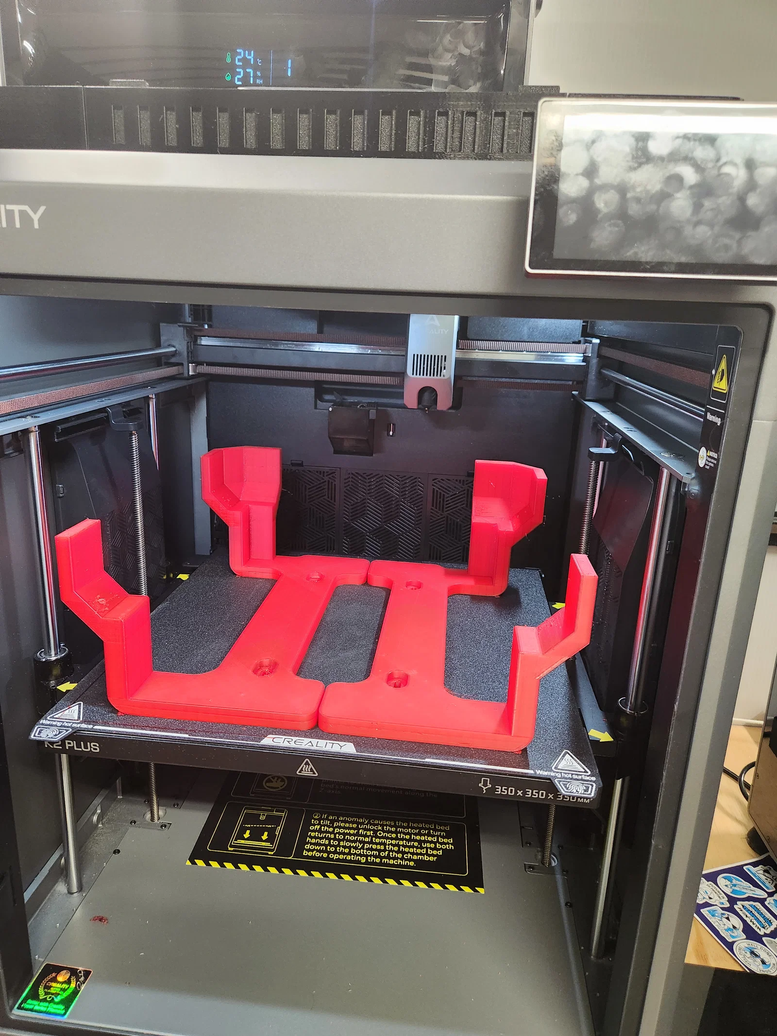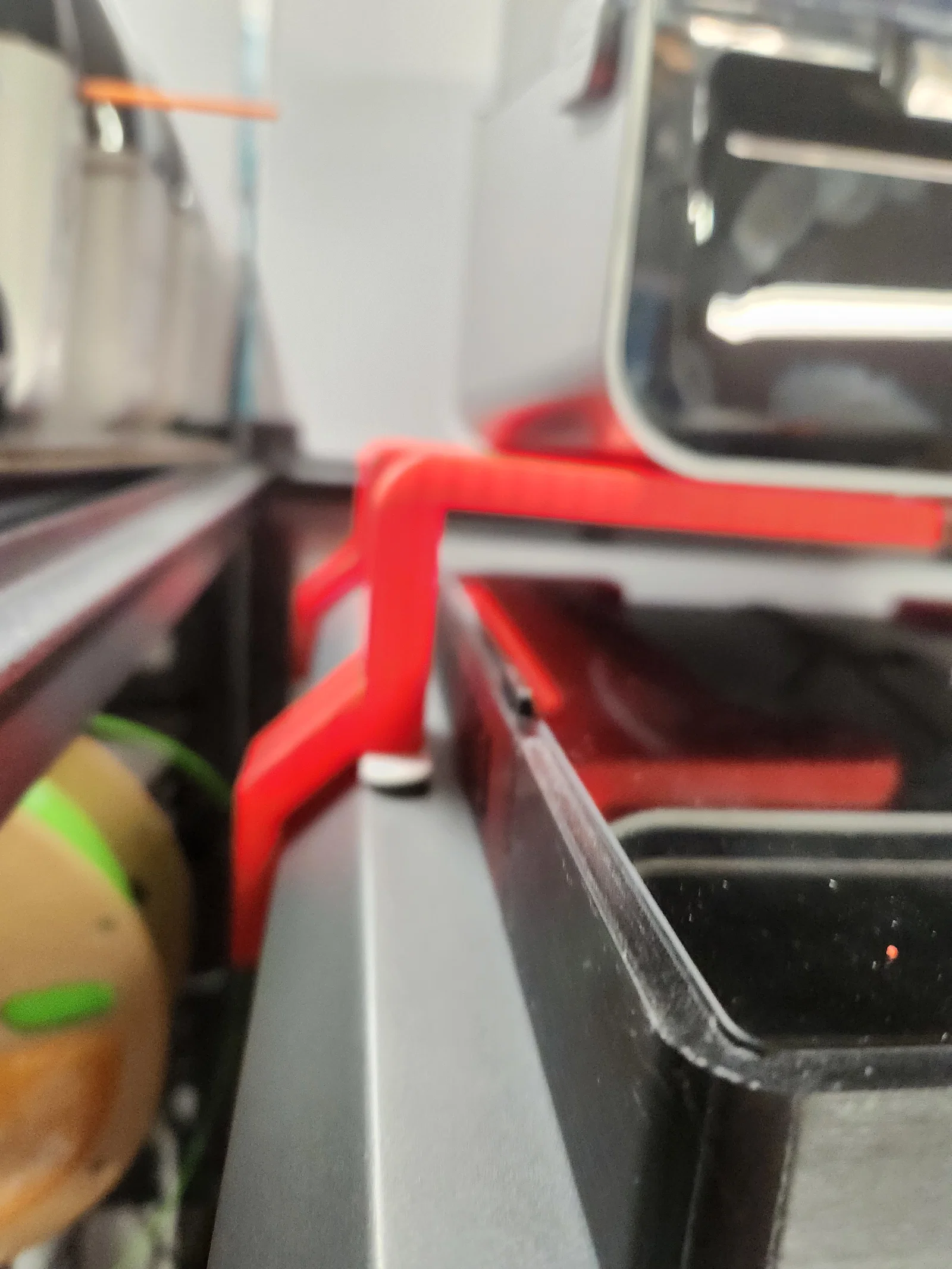 Mẫu này được thiết kế để in mà không cần support. Cả hai bộ phận đều có thể đặt vừa trên bàn in cùng lúc. Khuyên dùng nhựa PETG, ABS hoặc ASA vì khu vực thông gió của máy sẽ tỏa nhiệt khi mở nắp thông gió. Mình có đính kèm file Fusion 360 cho bạn nào muốn tùy chỉnh lại theo ý thích. Bạn nên thêm một vòng đệm nhỏ vào các con ốc đi kèm theo máy (loại có sẵn keo khóa ren màu xanh). Do hiện tượng bị võng, mình đã dùng miếng dán gai (velcro/command strips) để giữ cho nó không bị cong vênh ra ngoài. Mình cũng đang cân nhắc dùng dây câu hoặc dây dù để cố định thay thế. Sản phẩm tạo khoảng trống cho các loại nắp riser khác nhau, vẫn đảm bảo không gian để tháo nắp kính ra mà không bị vướng.