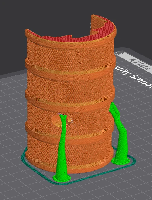 Độ dày lớp in: 0,2mm 5 lớp tường (walls) Độ lấp đầy (infill): 20% kiểu gyroid 7 lớp bề mặt trên và dưới