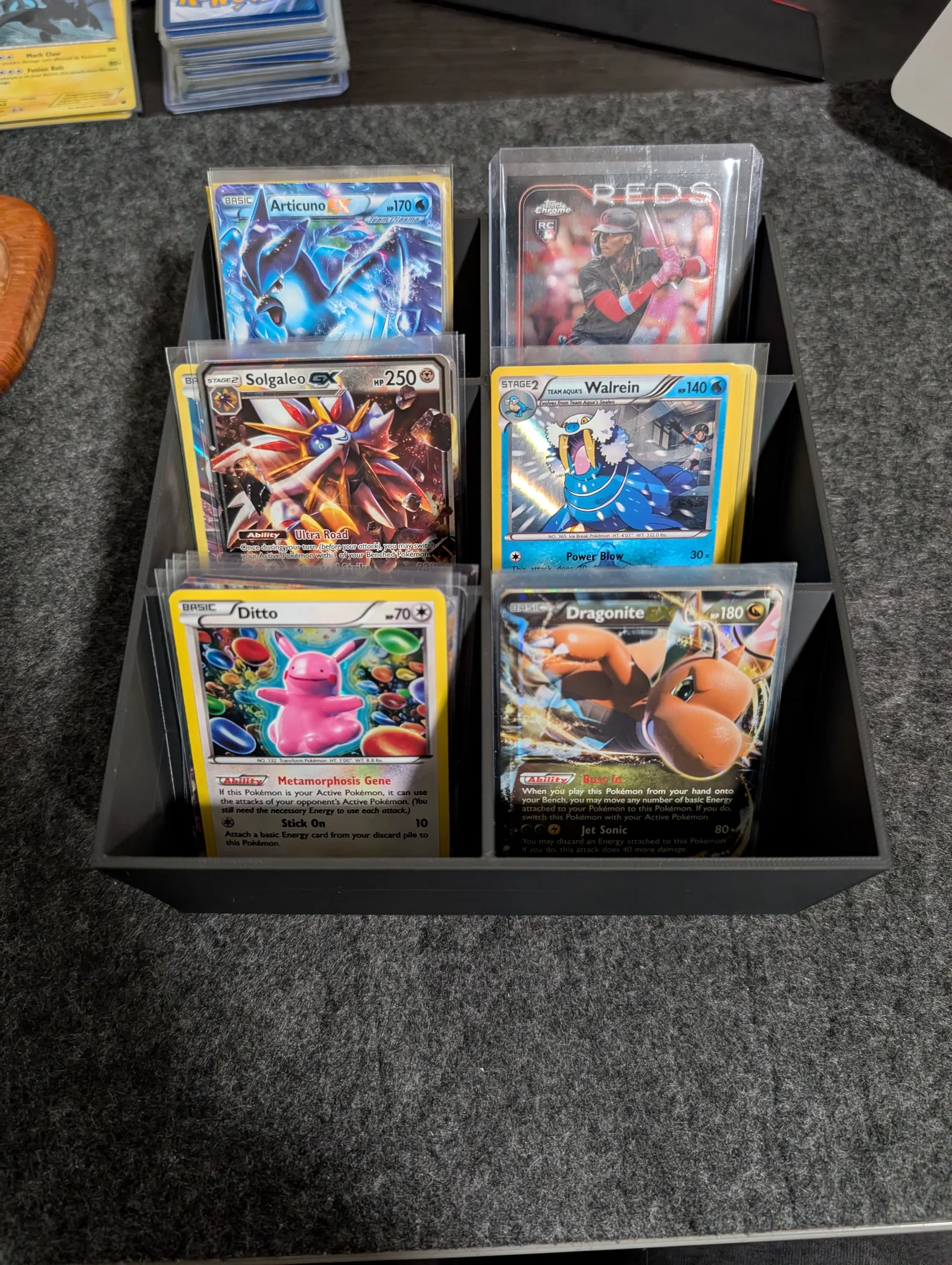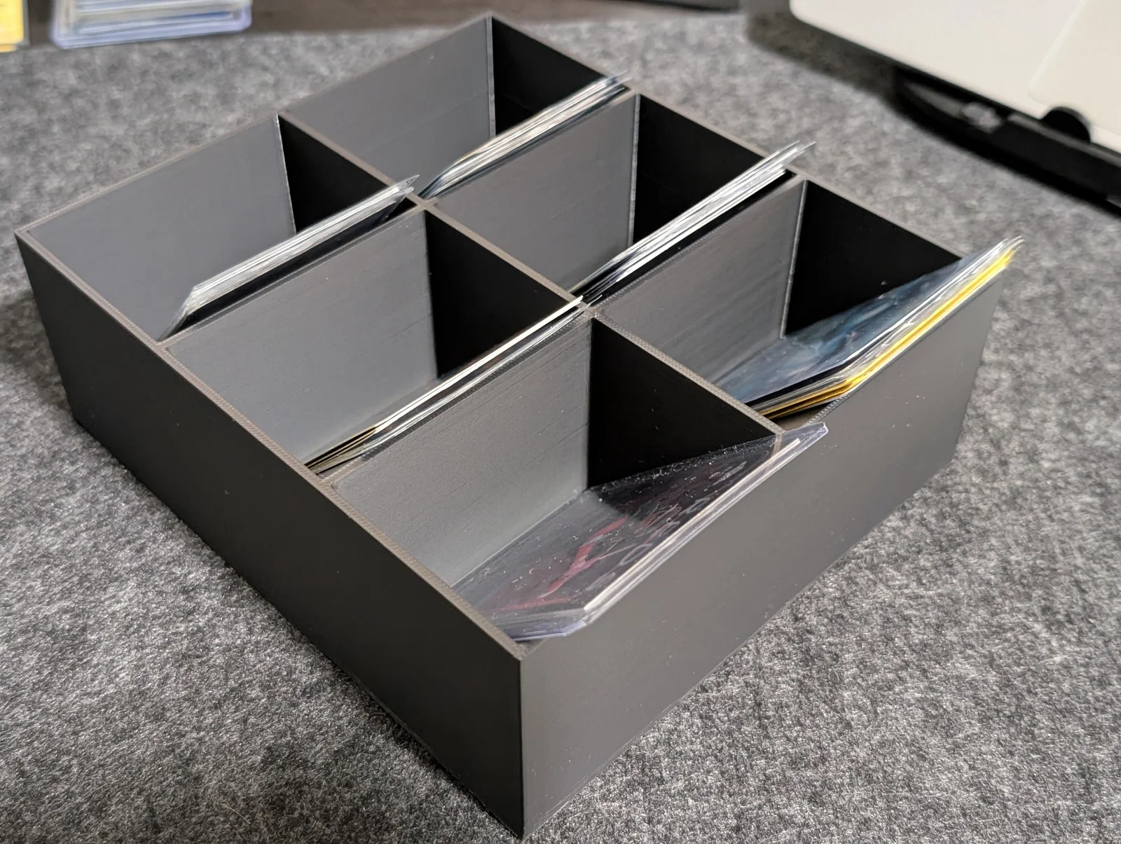 Khay phân loại thẻ bài đã được cắt ghép và phóng to 120% so với bản gốc. Phiên bản này có 6 ngăn sắp xếp theo cấu trúc 2x3, cực kỳ phù hợp cho các loại thẻ kích thước lớn như Pokémon hay Magic: The Gathering.