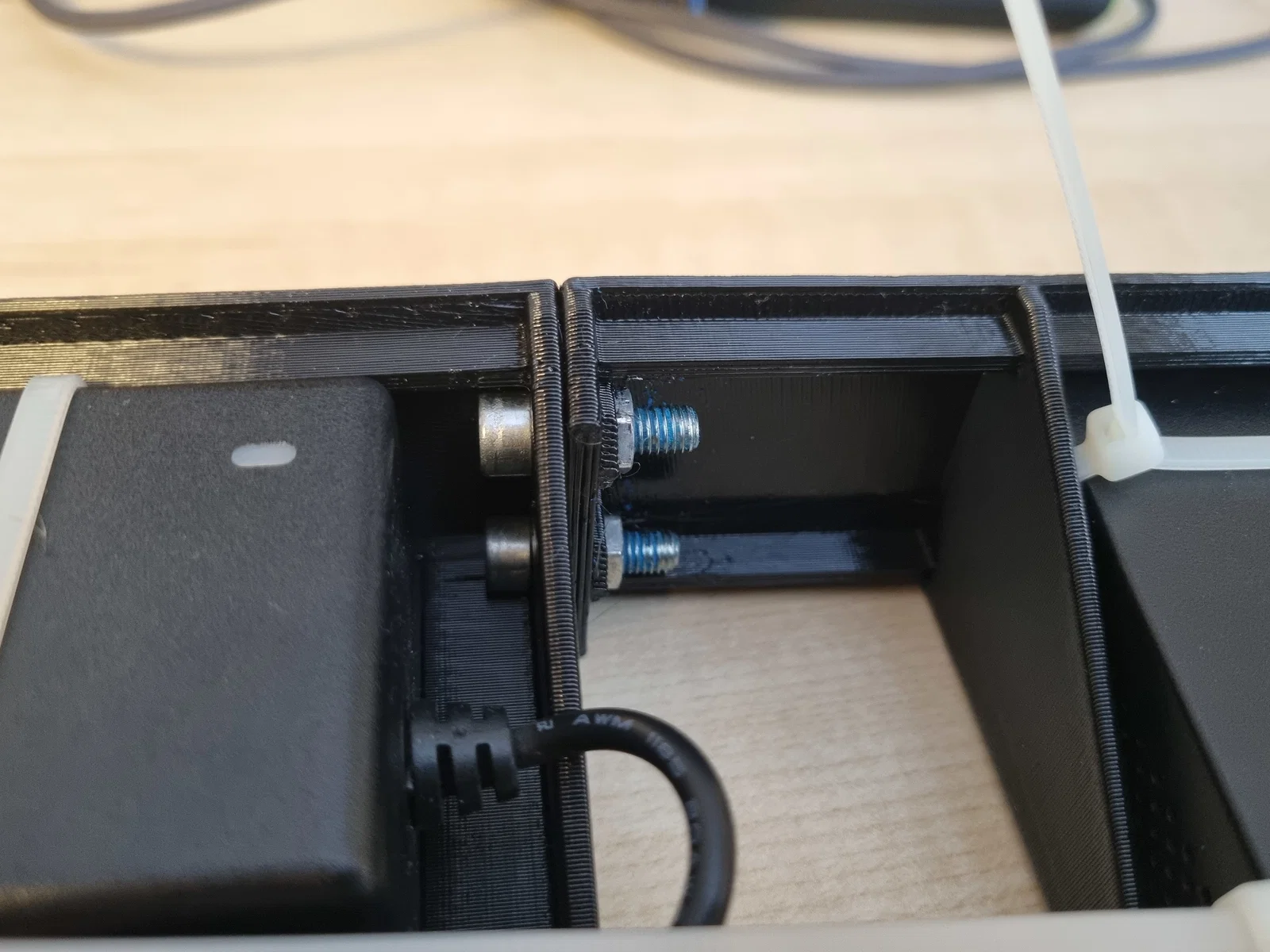 Đây là giá đỡ rack 19 inch đơn giản dành cho Ubiquiti EdgeRouter X SFP cũng như cục nguồn của nó. Vì không muốn quá bận tâm về dung sai, mình đã thiết kế giá đỡ này dựa trên cách dùng dây rút (cable ties); dù hơi thô nhưng nó hoạt động rất hiệu quả. Bạn sẽ cần thêm hai bu lông M5 (dài ít nhất 10mm) cùng đai ốc để cố định hai bên. Nếu bạn muốn lắp router ở phía bên phải, hãy dùng tính năng mirror trong phần mềm slicer của bạn nhé. Mình vẫn chưa thật sự ưng ý với một vài chi tiết: Cục nguồn đáng lẽ nên đặt thấp hơn một chút. Các vách ngăn gia cố làm cản trở luồng không khí của router. Router bị nghiêng nhẹ sau khi siết chặt dây rút. Một vài vị trí xỏ dây rút có thể làm gọn hơn. * Dây rút làm nhựa bị cong khá nhiều. Tuy nhiên, nó vẫn hoàn toàn hoạt động tốt. Do thời gian có hạn, mình nghĩ 'vừa đủ dùng' là ổn rồi. Mình đã đính kèm file Fusion 360 để bạn có thể thoải mái chỉnh sửa hoặc khắc phục các vấn đề trên. Nếu có bản cải tiến, đừng quên chia sẻ lại nhé!