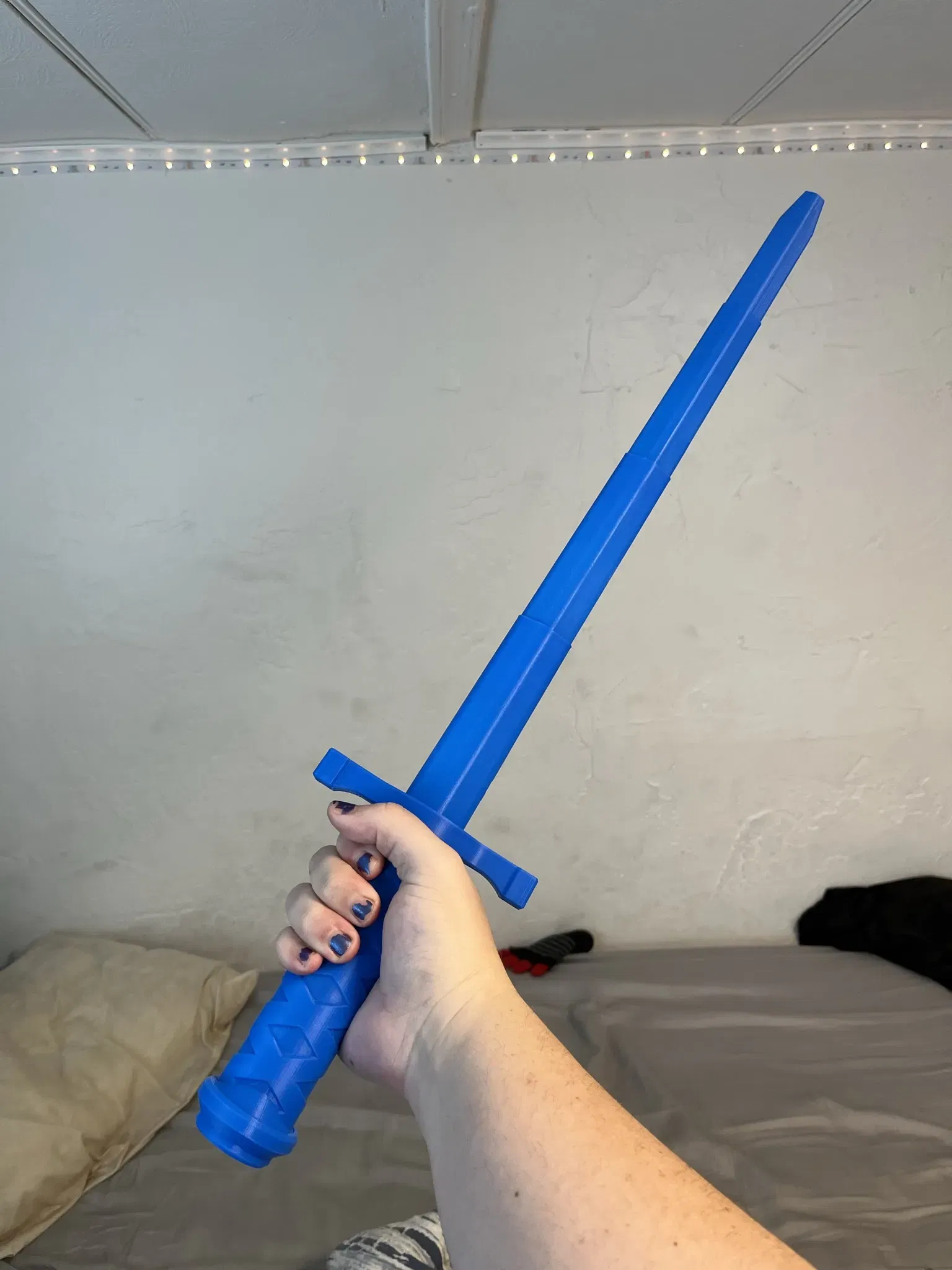 kiếm có thể gập lại được lấy cảm hứng từ "thế giới in 3D". bạn có thể in lưỡi kiếm riêng biệt và trượt nó vào phía sau.