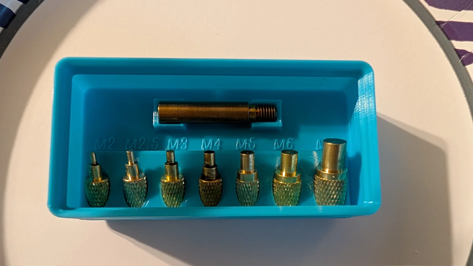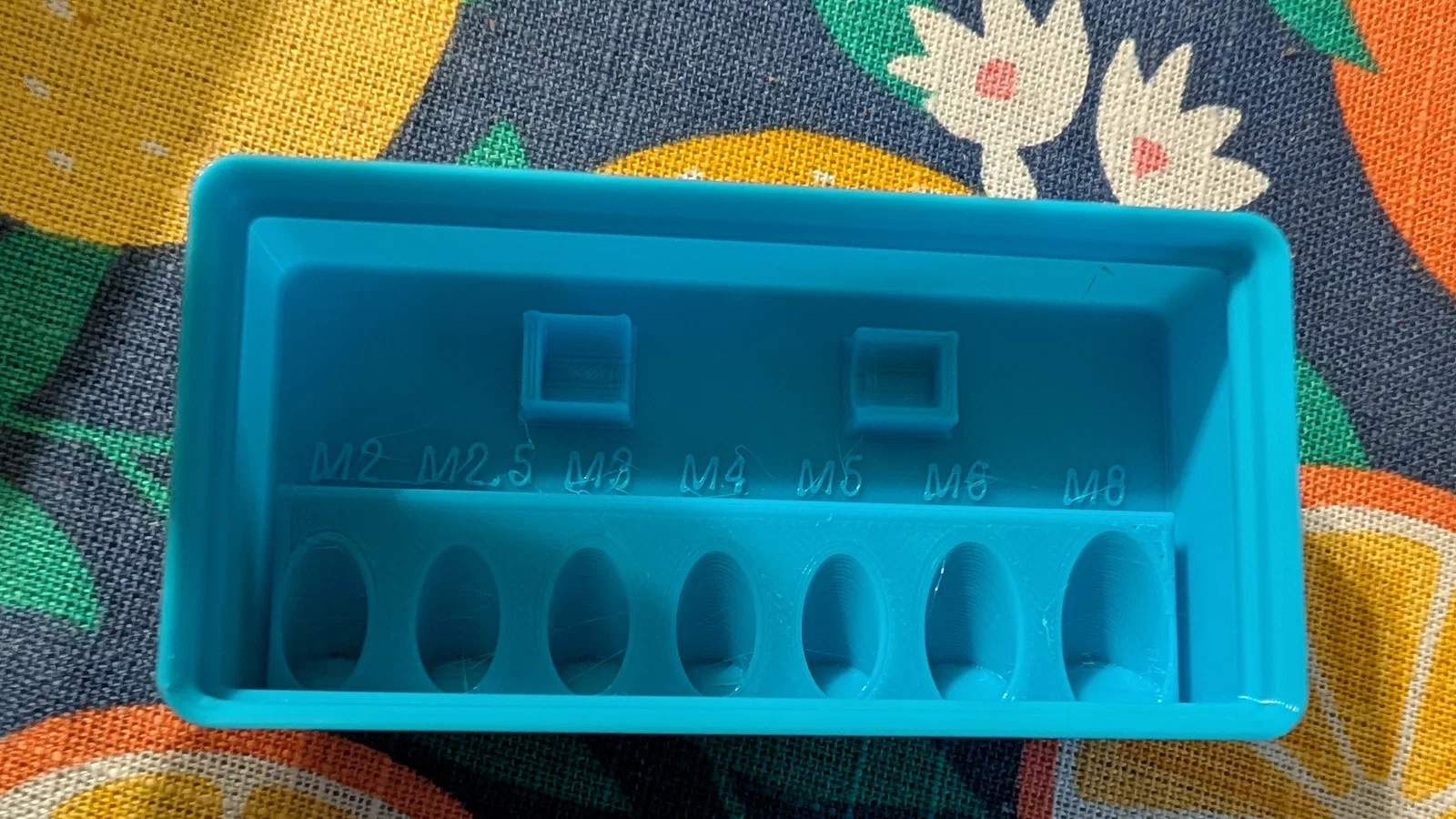 Khay được thiết kế với các hốc riêng biệt, đánh dấu rõ ràng từ M2 đến M8 để anh em không bao giờ phải mất công tìm kiếm đúng kích thước cần dùng. Điểm cộng cực lớn là khay có tích hợp sẵn các vị trí để dán nam châm ở mặt đáy, giúp nó bám chặt vào tấm nền Gridfinity, tránh tình trạng xô lệch khi anh em làm việc. Đây thực sự là một cải tiến chất lượng đời sống (QoL) đơn giản nhưng mang lại hiệu quả cực cao cho xưởng in 3D của bạn.