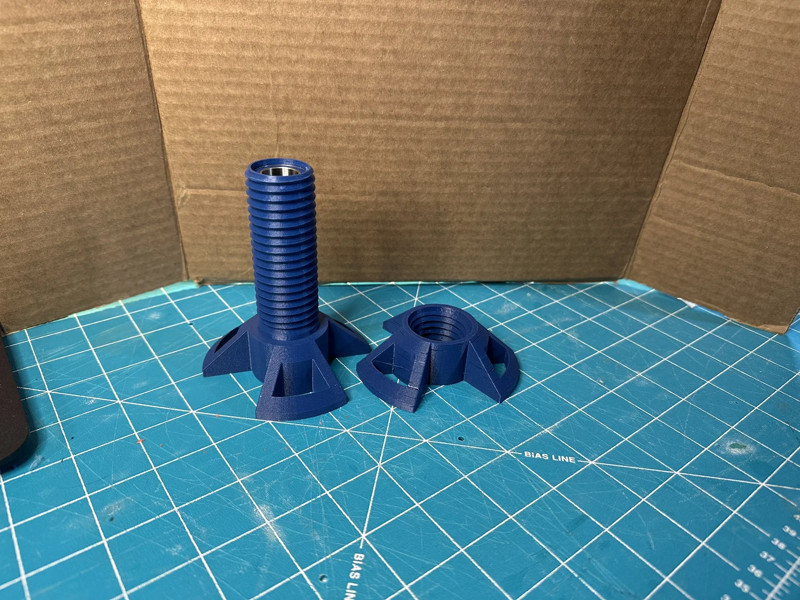 Mình in bằng PETG-CF để đạt độ cứng tốt hơn. Mình gợi ý bạn nên dùng các loại nhựa cứng như ABS hoặc ASA, không nên dùng PLA vì trục này cần chịu tải trọng của cả cuộn nhựa (hơn 1kg).
