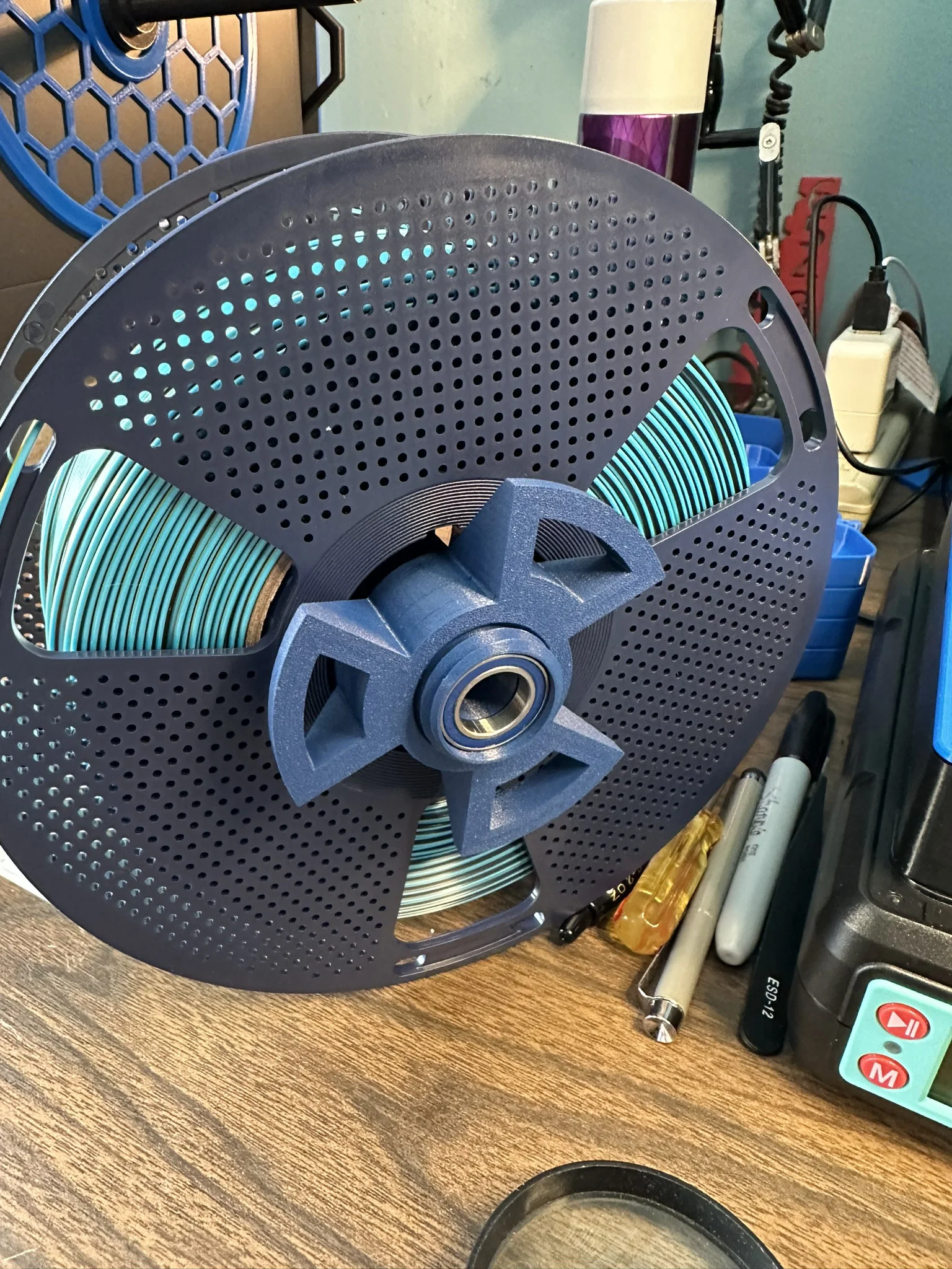 Mình rất ưng vì giá đỡ này giúp loại bỏ ma sát khi cuộn nhựa nằm trực tiếp trên tay đỡ của máy Elegoo Centauri Carbon. Nó cũng giúp giữ chắc chắn các cuộn nhựa có đường kính lỗ tâm khác nhau.