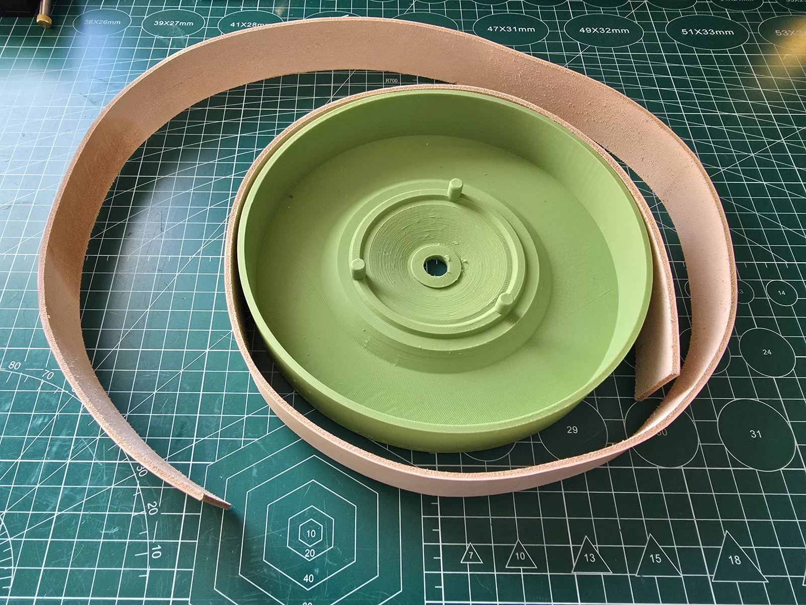 Đây là bánh mài da (Leather Honing Wheel) dành cho máy mài ướt Record Power WG200. Bánh mài được thiết kế với lỗ trục 12 mm nên không cần thêm bạc lót bằng nhôm. Ngoài ra, mình có thiết kế thêm một miếng đệm 12x24x6 ở mặt ngoài để các bạn có thể in bánh mài mà không cần dùng support. Các chốt ở mặt trong được thiết kế chính xác cho dòng WG200, nhưng biết đâu nó cũng vừa với các dòng máy khác. Khoảng cách giữa 2 chốt là 66 mm. Để hoàn thiện, các bạn cần chuẩn bị một dải da (độ dày từ 2 đến 3 mm) có chiều dài tối thiểu 565 mm và chiều rộng 30 mm.