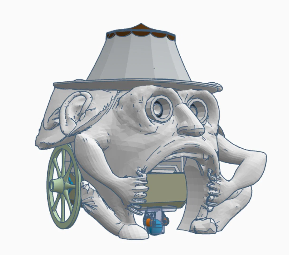 Mình đã chọn ra sinh vật kỳ dị trong hình, một cái đầu kỳ lạ với những cánh tay mọc ra từ thái dương, đôi chân ếch từ má và một chiếc lều lạ lùng ở trên đỉnh. Mình sử dụng Meshy để thực hiện bước chuyển đổi cơ bản từ ảnh 2D sang mô hình 3D. Sau đó, mình thực hiện chỉnh sửa kỹ lưỡng bằng các công cụ điêu khắc trong Blender rồi mới điều chỉnh để khớp với Otto Robot và thêm vào một số chức năng.