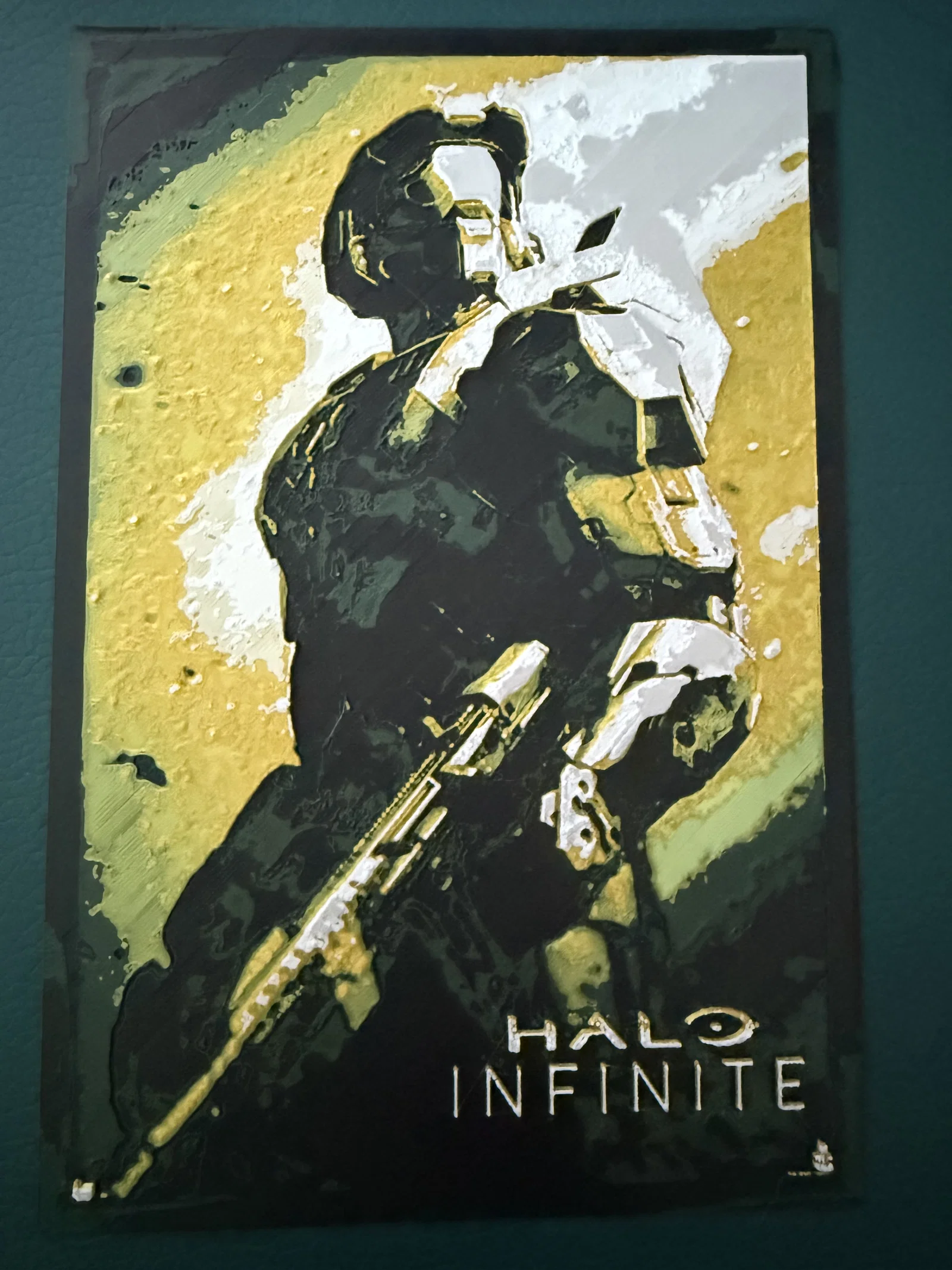 Tranh Hueforge 5 màu khắc họa hình ảnh huyền thoại Master Chief 117 từ series Halo nổi tiếng của Paramount. Mô hình đòi hỏi độ chính xác cao để tái hiện chi tiết nhân vật biểu tượng, xứng đáng là món quà tri ân cho vị anh hùng bảo vệ nhân loại.